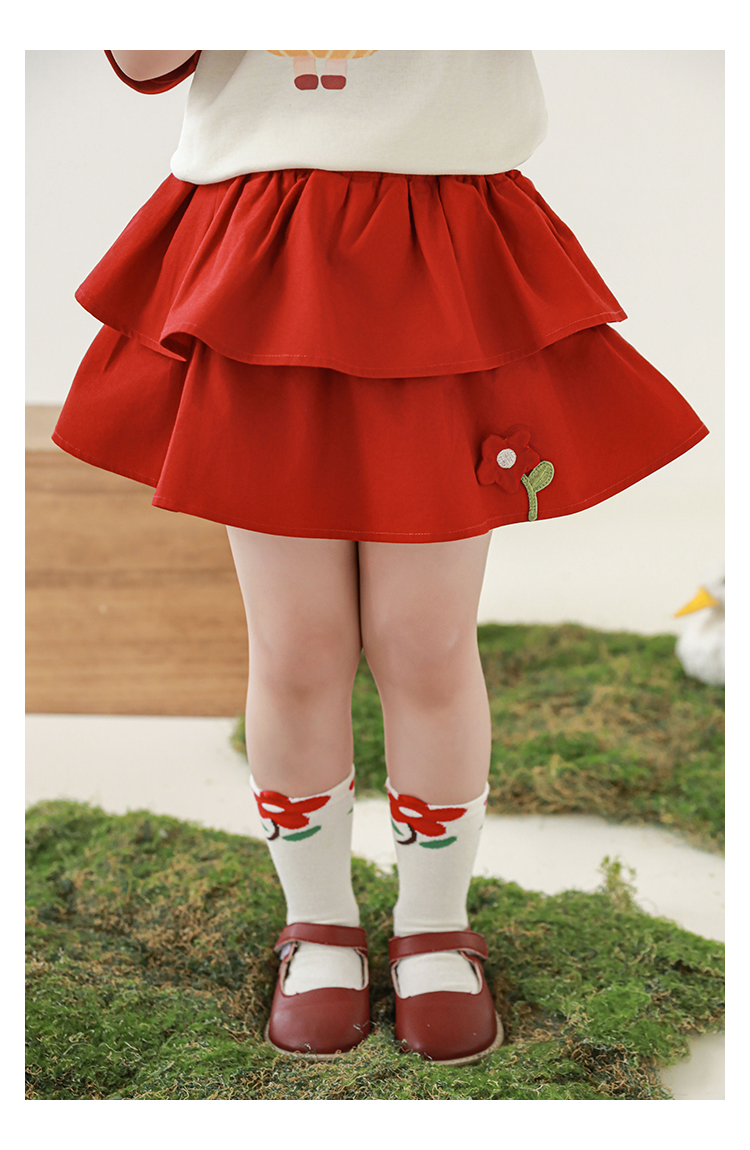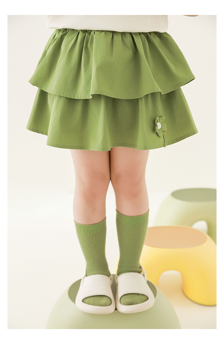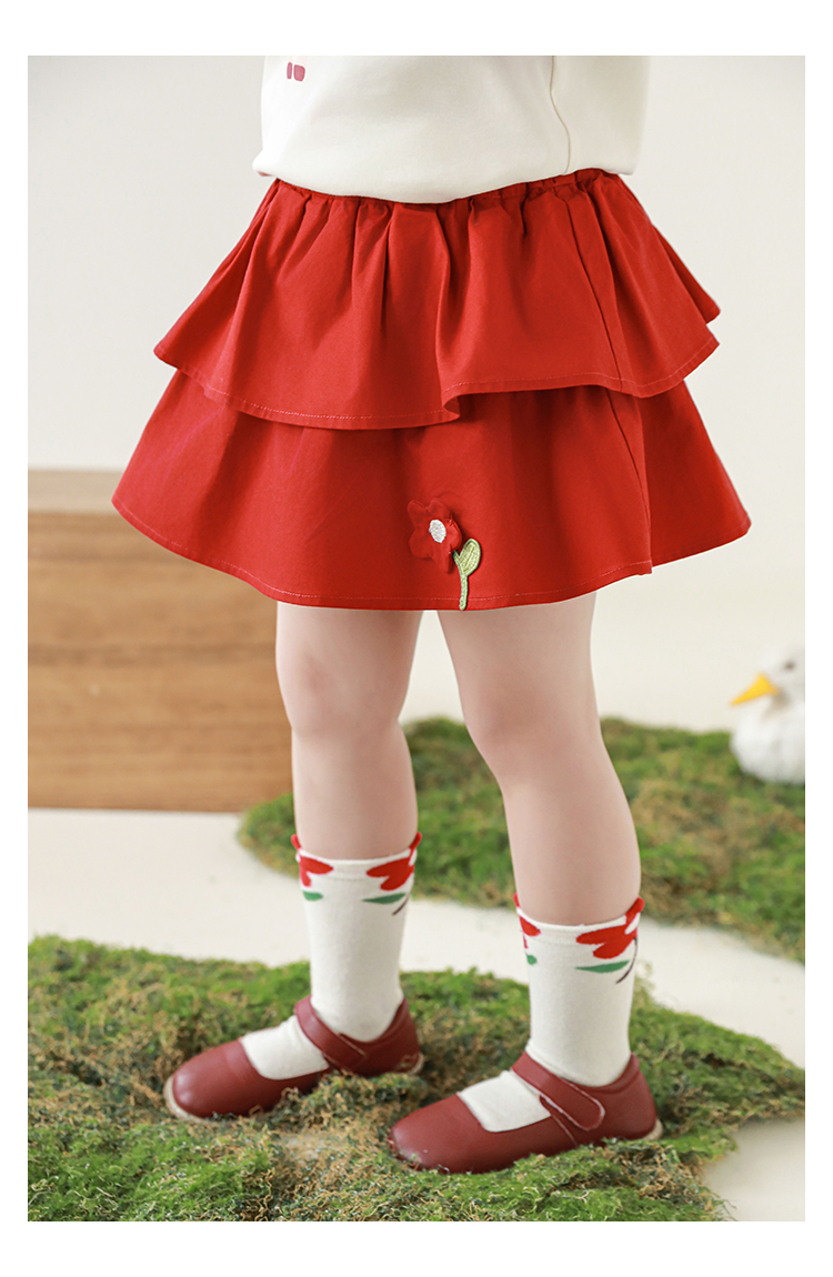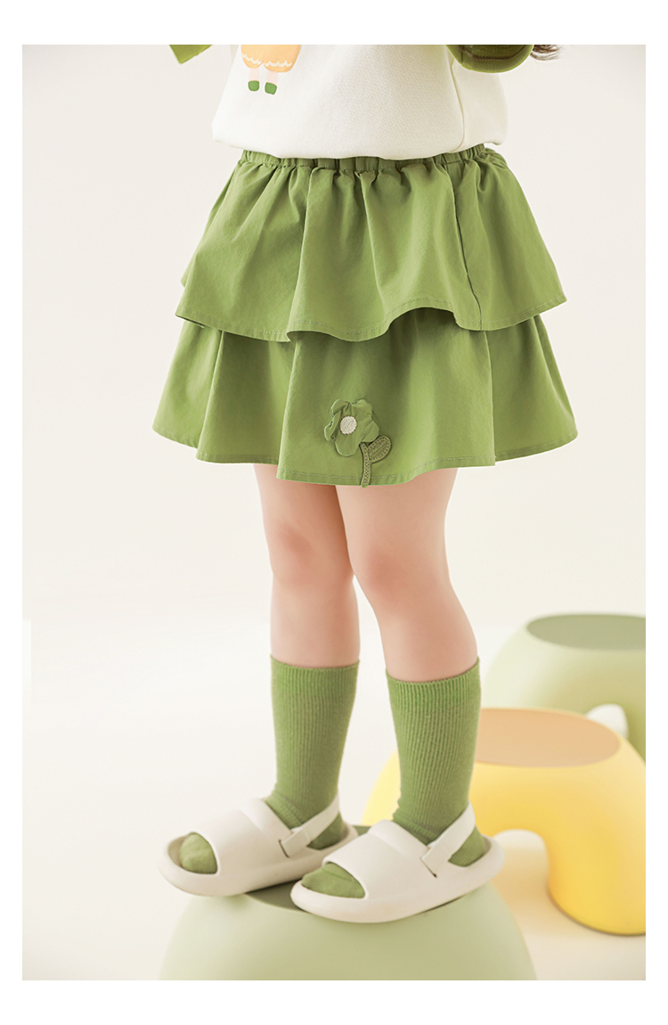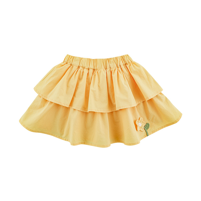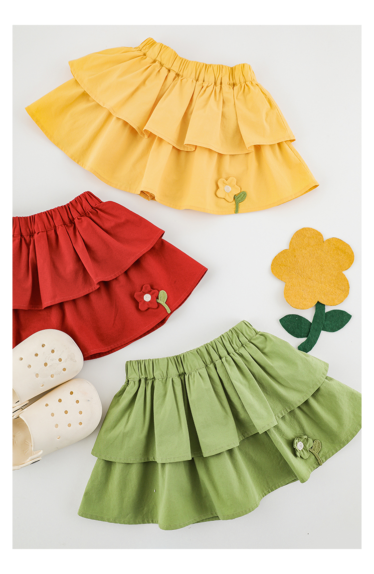우리부이 여아용 이중 레이어 퍼프 케이크 스커트 여름용 달콤하고 귀여운 꽃 요정 자수 라벨 팬티 스커트