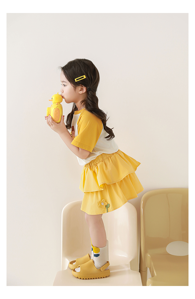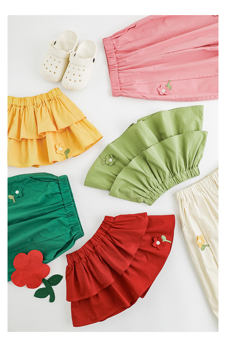 우리부이 여아용 이중 레이어 퍼프 케이크 스커트 여름용 달콤하고 귀여운 꽃 요정 자수 라벨 팬티 스커트스토어 가기