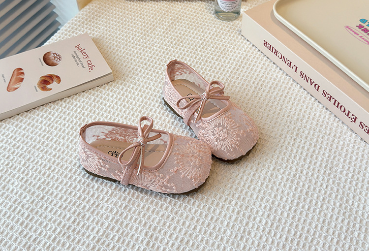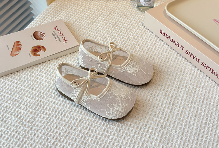 플랫 통기성 레이스 메쉬 신발 2025 봄과 여름 새로운 한국 스타일 소녀의 활 얕은 입 메리 제인 신발