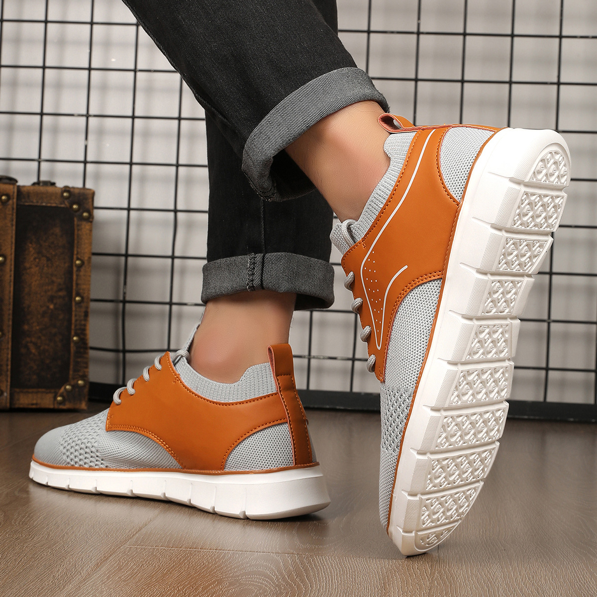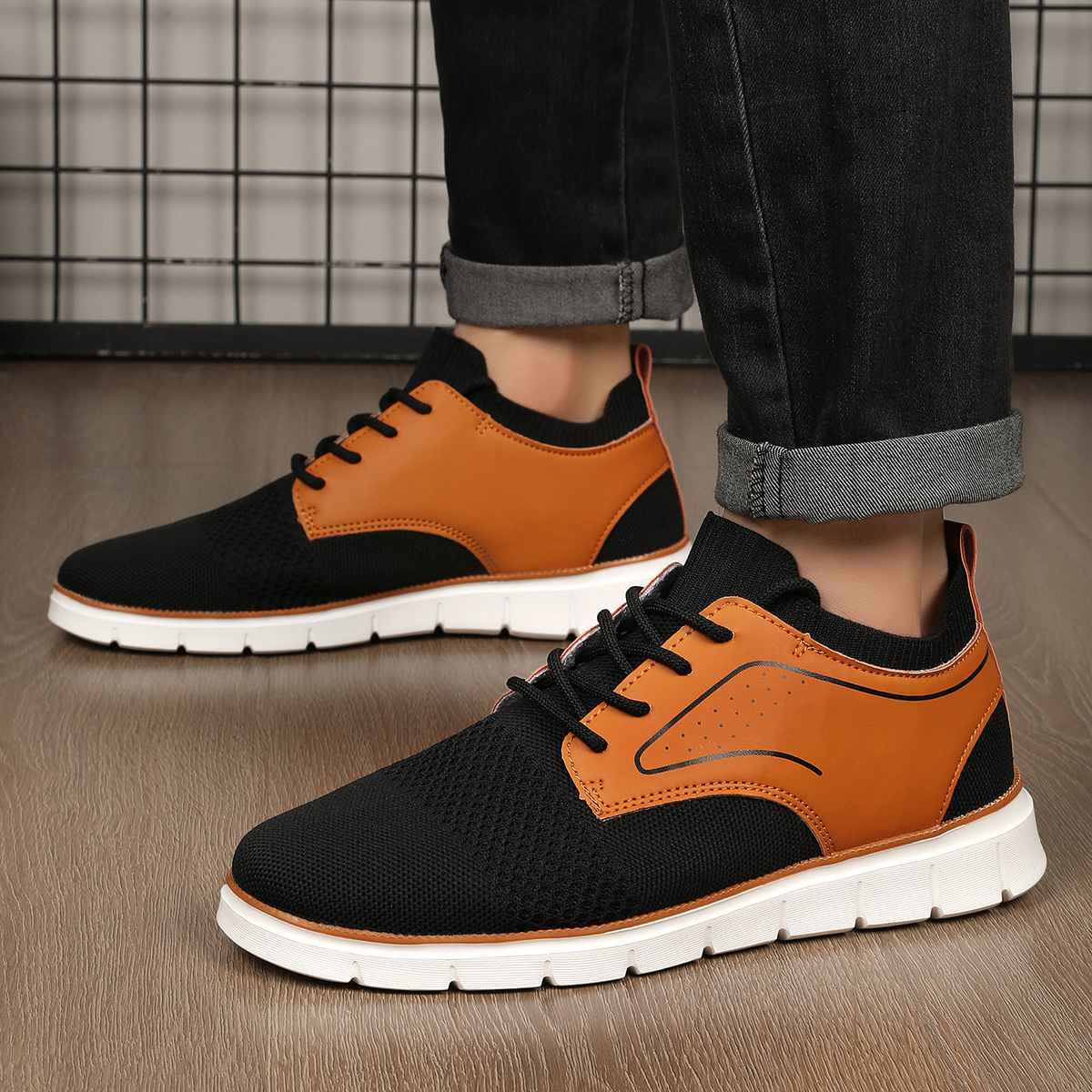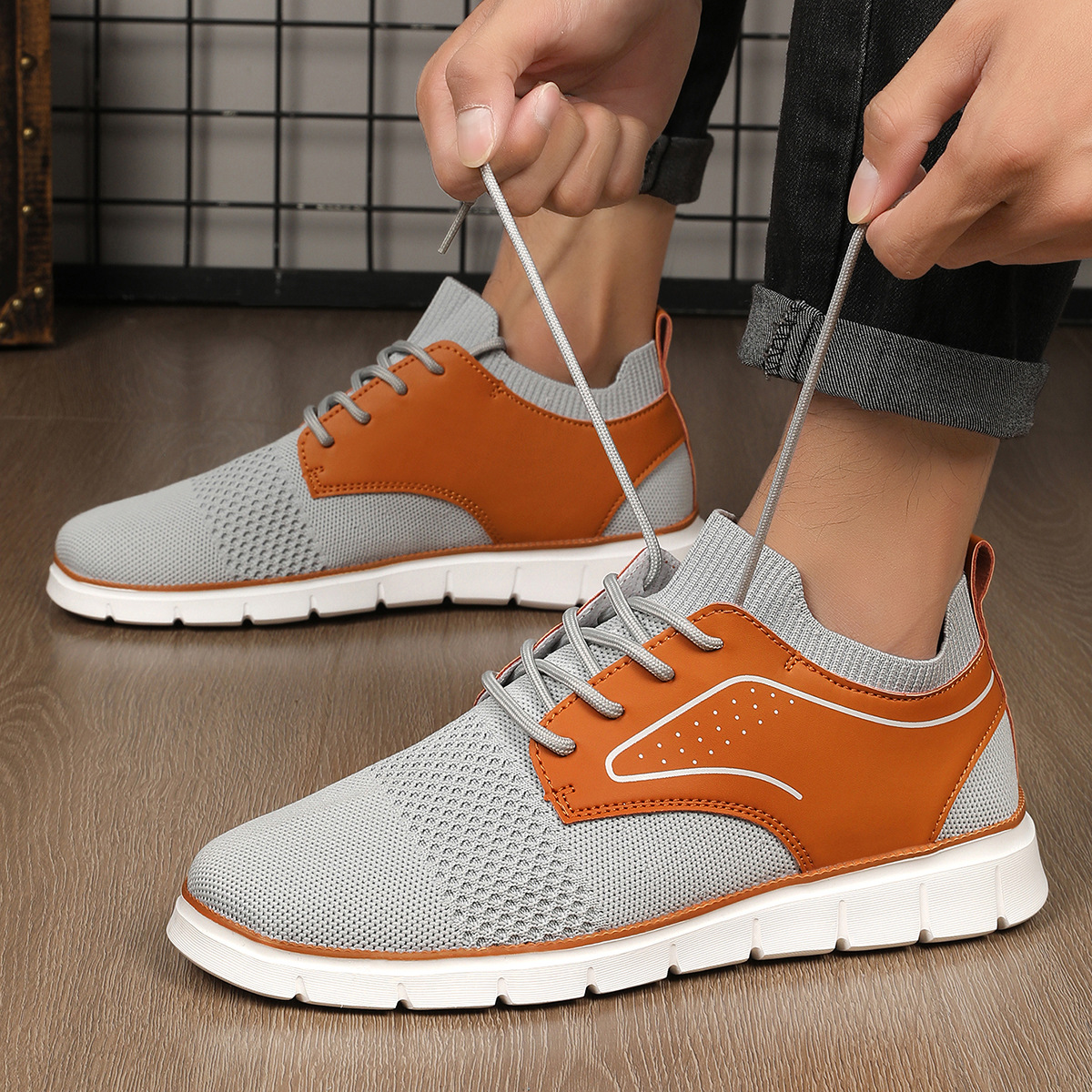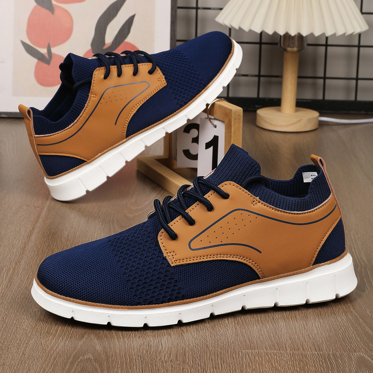 국경 간 플러스 사이즈 영국 스타일 캐주얼 남성 신발 봄과 가을 패션 통기성 운동화 로우 탑 레이스 업 플라잉 메쉬 신발스토어 가기