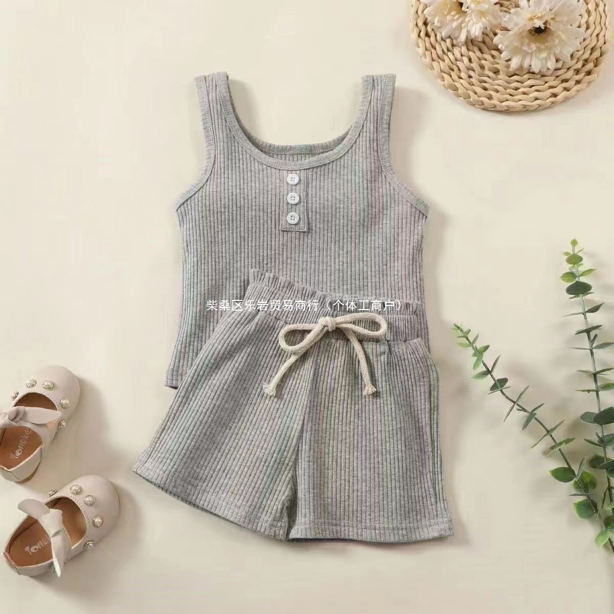 2025 년 여름 새 아기 민소매 달콤한 스타일 레저 그물 레드 세트 남녀 도매 투피스 조끼