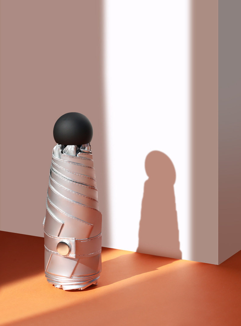 둥근 손잡이 여섯 뼈 다섯 접힌 우산 티타늄 접착제 미니 접는 포켓 우산 여성용 접히는 자외선 비 우산