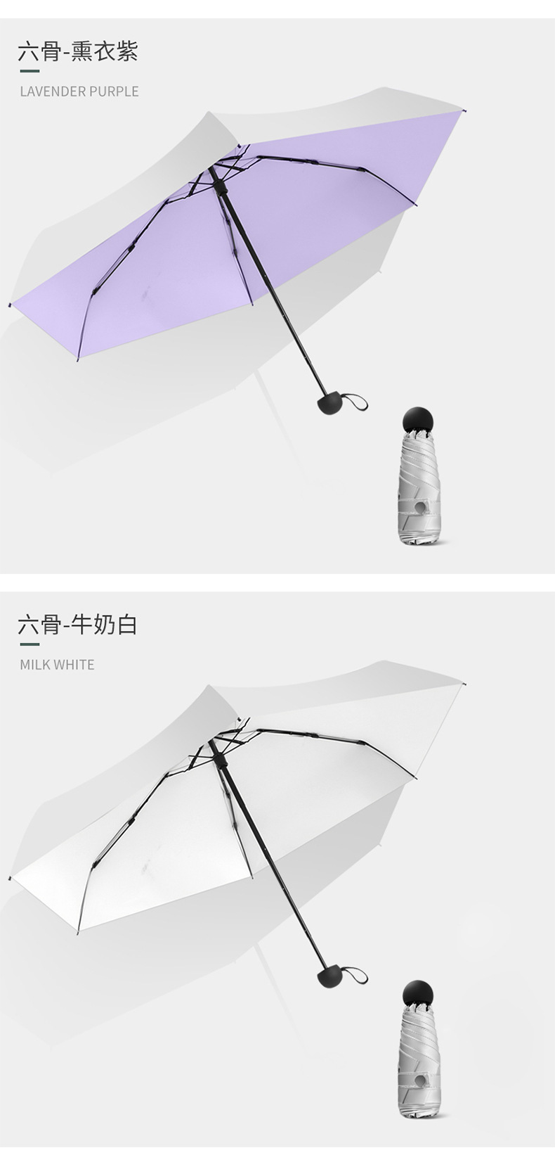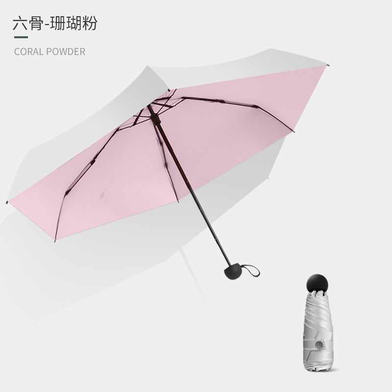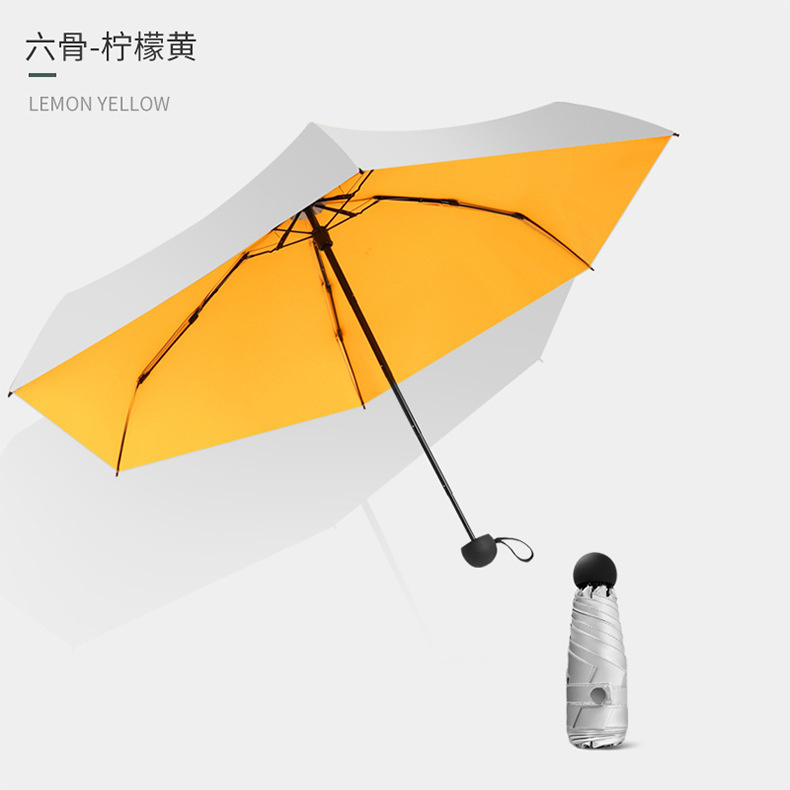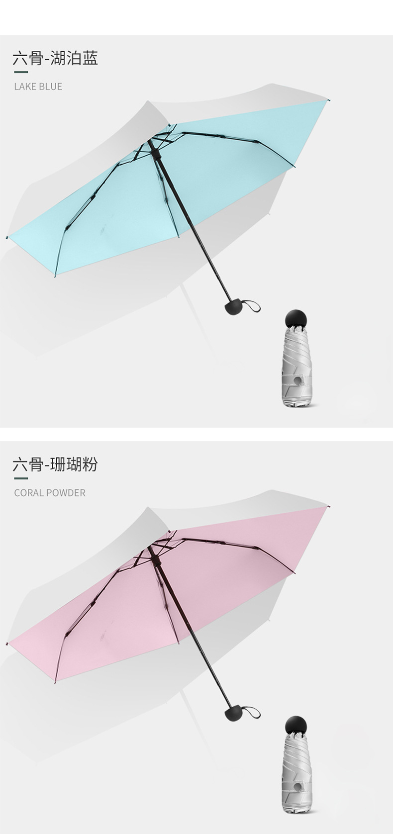 둥근 손잡이 여섯 뼈 다섯 접힌 우산 티타늄 접착제 미니 접는 포켓 우산 여성용 접히는 자외선 비 우산스토어 가기