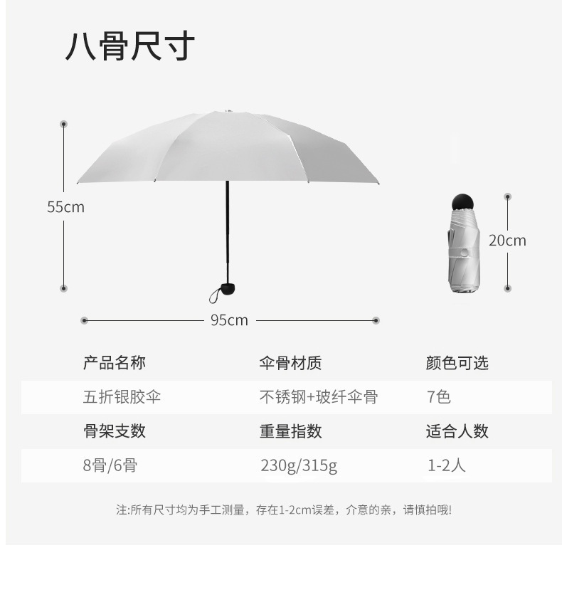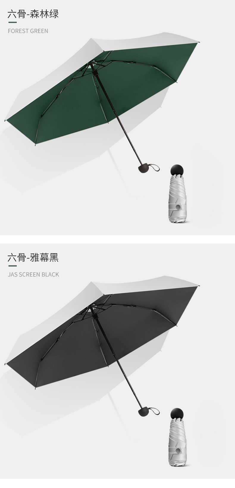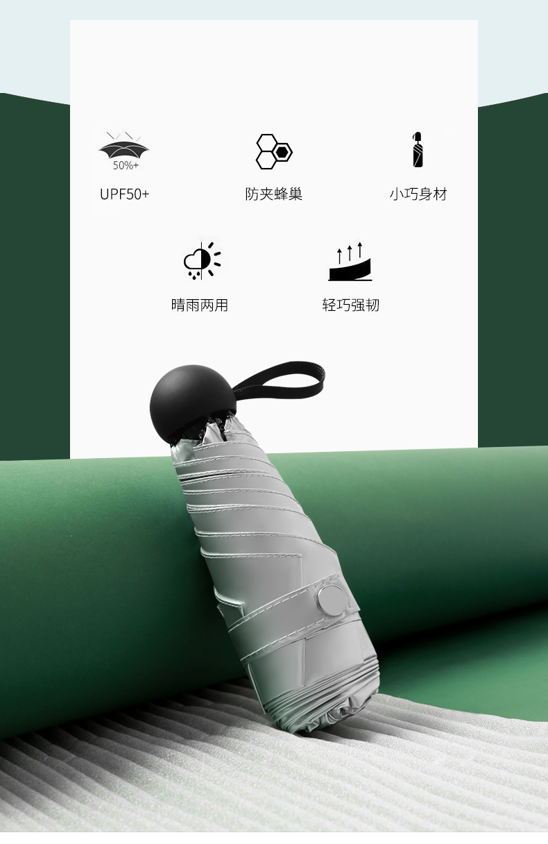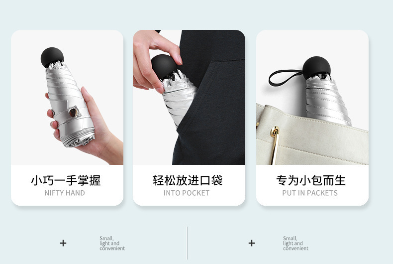 둥근 손잡이 여섯 뼈 다섯 접힌 우산 티타늄 접착제 미니 접는 포켓 우산 여성용 접히는 자외선 비 우산스토어 가기
