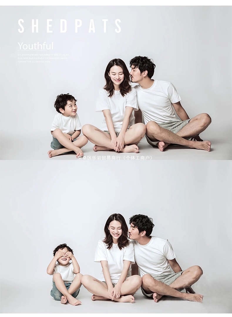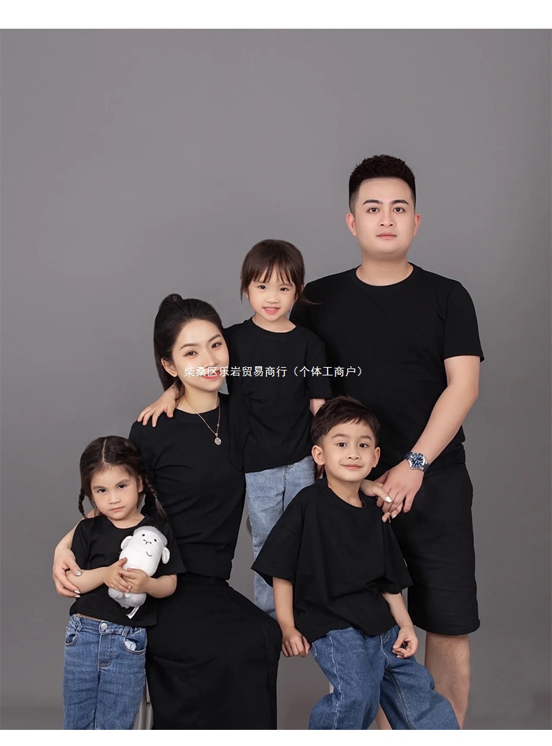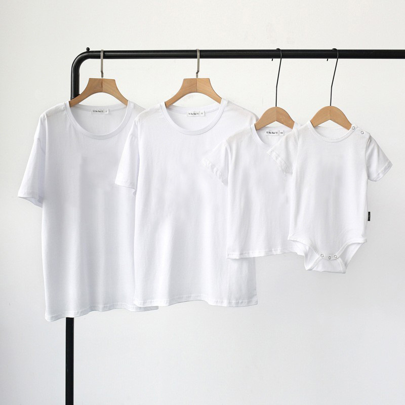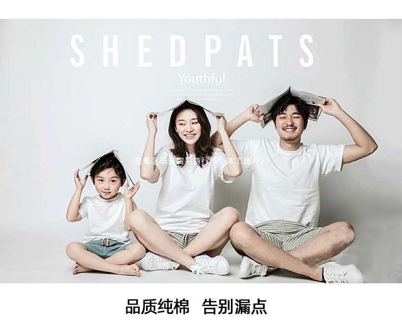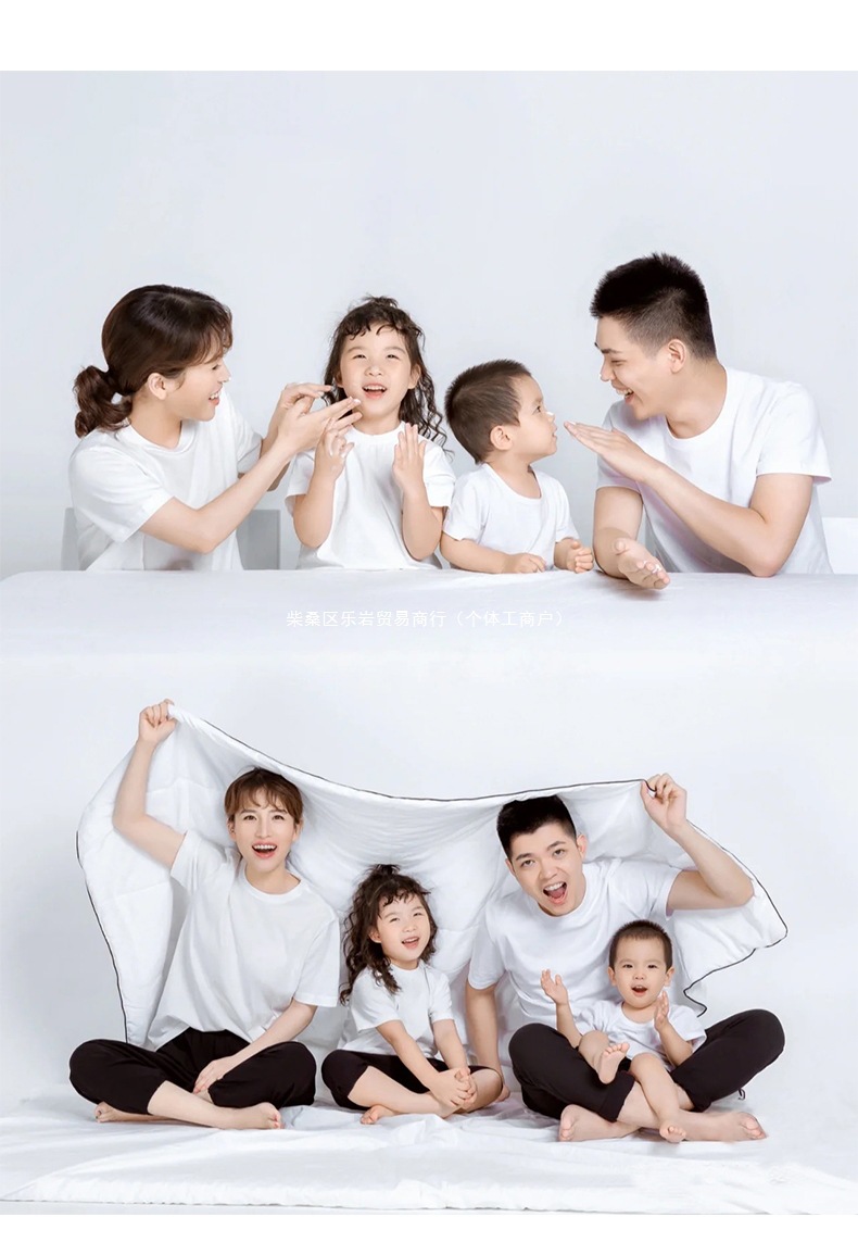 부모-자식 흰색 티셔츠 가족 3-4 여름 아기 가족 사진 스튜디오 사진 엄마와 딸 단색 도매스토어 가기