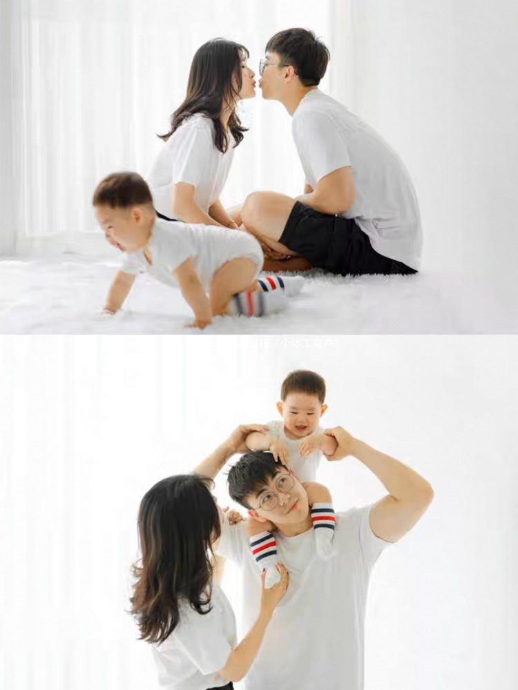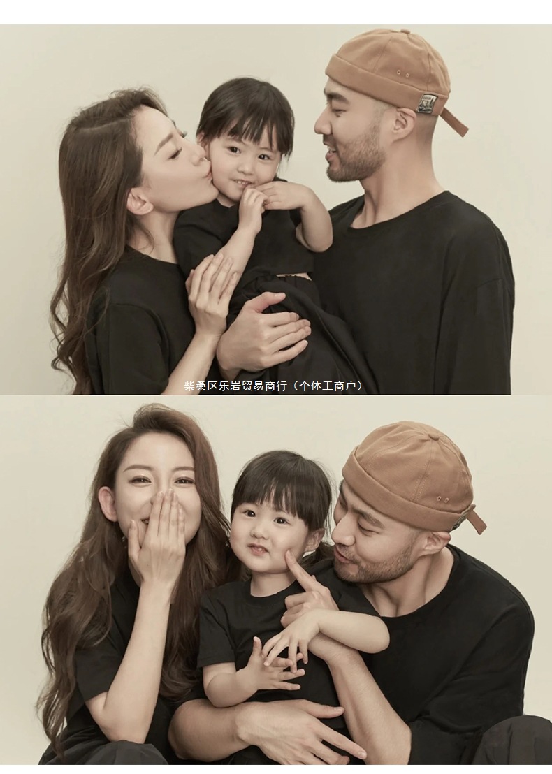 부모-자식 흰색 티셔츠 가족 3-4 여름 아기 가족 사진 스튜디오 사진 엄마와 딸 단색 도매