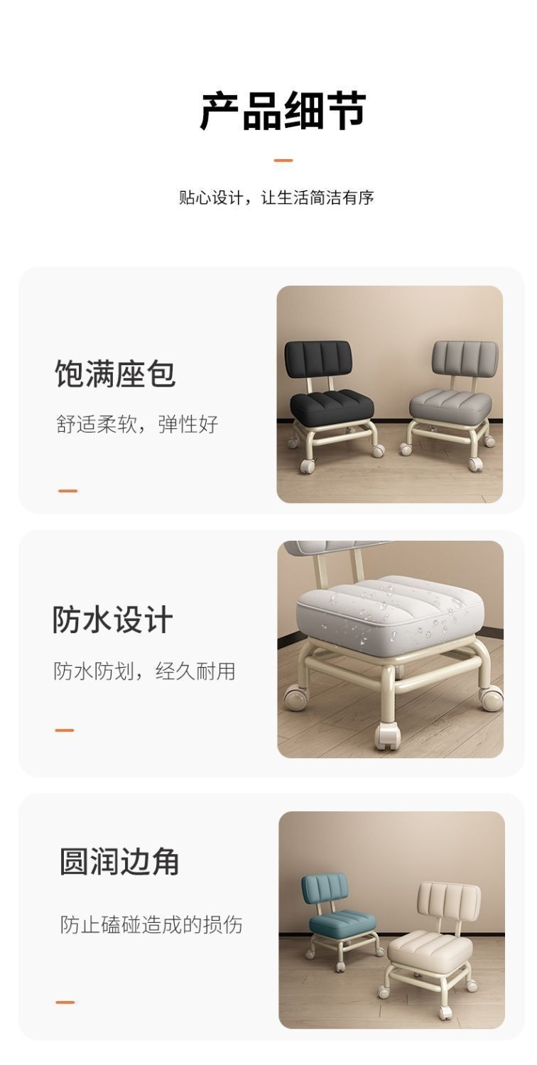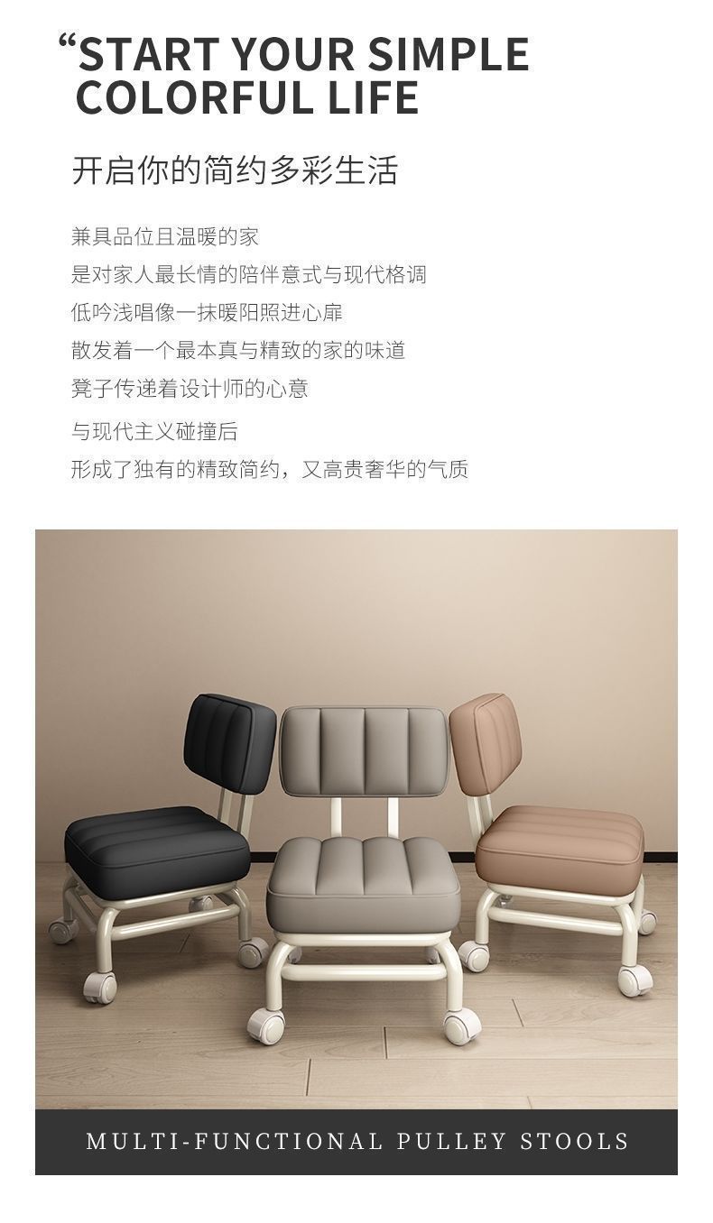 유니버설 휠 작은 의자 거실 가구 성인 낮은 의자 조용한 풀리 움직일 수있는 등받이 의자 어린이 바퀴 벤치