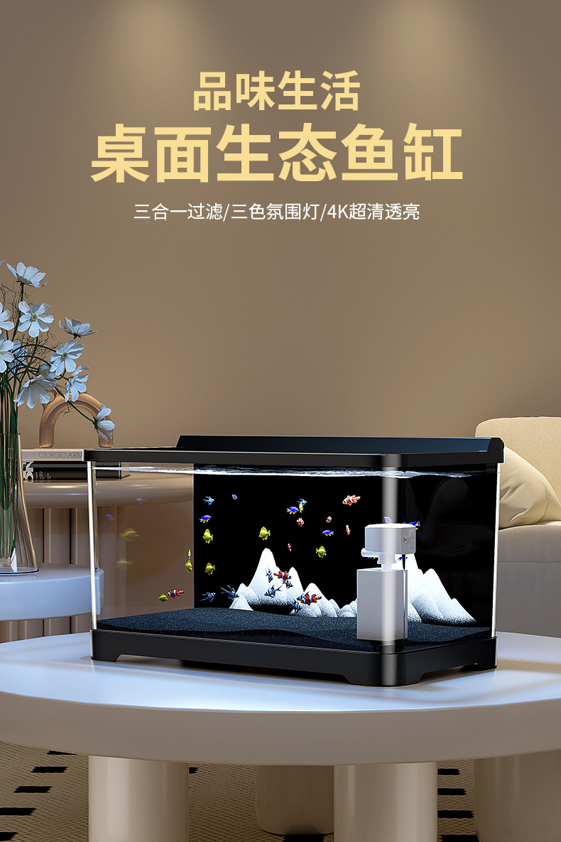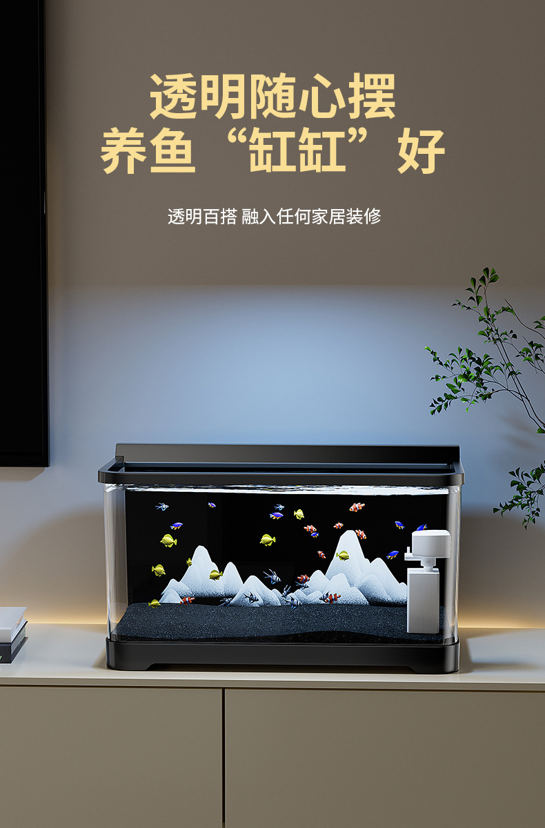 Kuo Ting 물고기 탱크 수족관 플라스틱 투명한 게으른 금붕어 탱크 거실 발코니 가정 풍경 중소 데스크탑 탱크스토어 가기