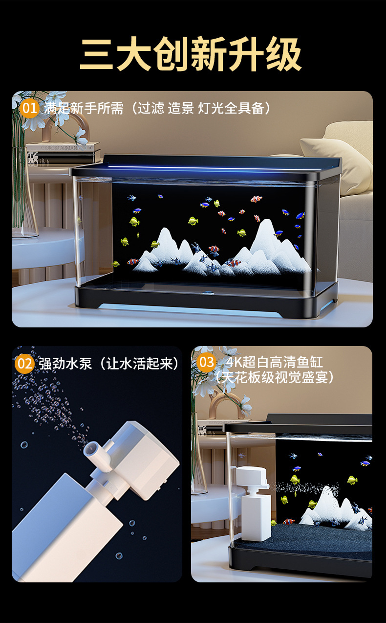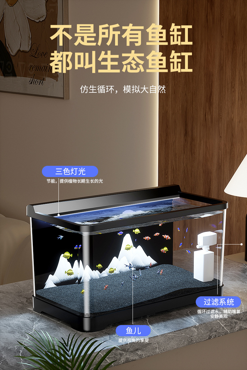 Kuo Ting 물고기 탱크 수족관 플라스틱 투명한 게으른 금붕어 탱크 거실 발코니 가정 풍경 중소 데스크탑 탱크