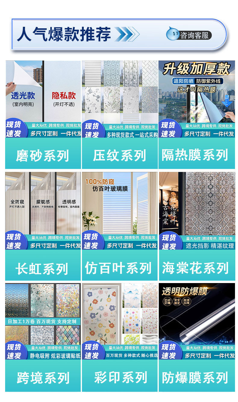 유리 스티커 젖빛 창 반대로 엿보기 필름 투명한 유리 스티커 침실 거실 두꺼운 음영 유리 스티커 선 스크린스토어 가기