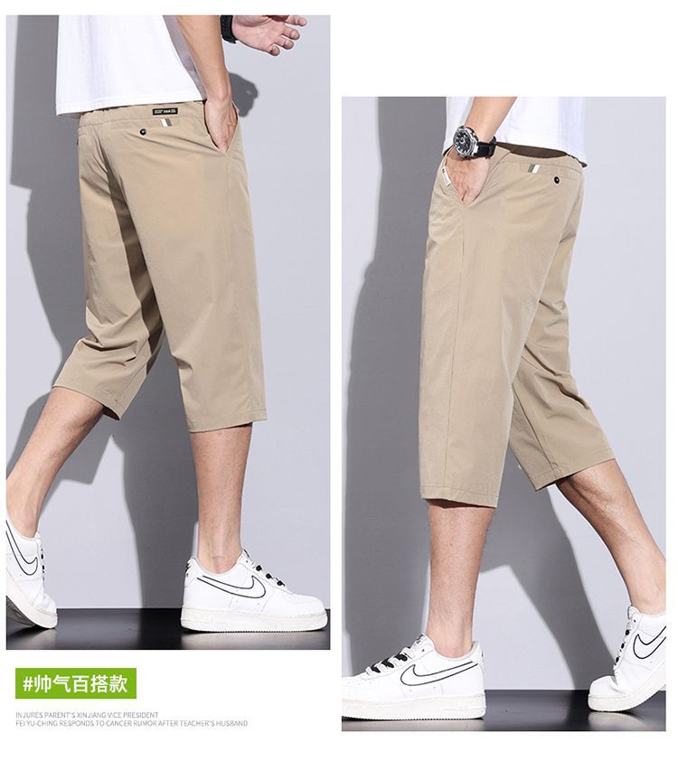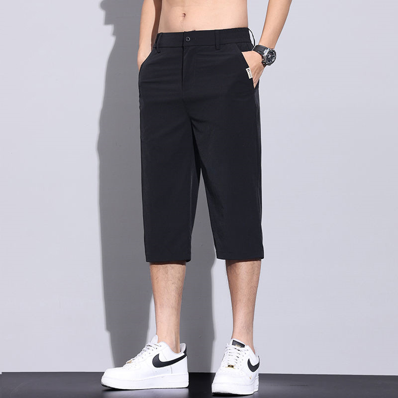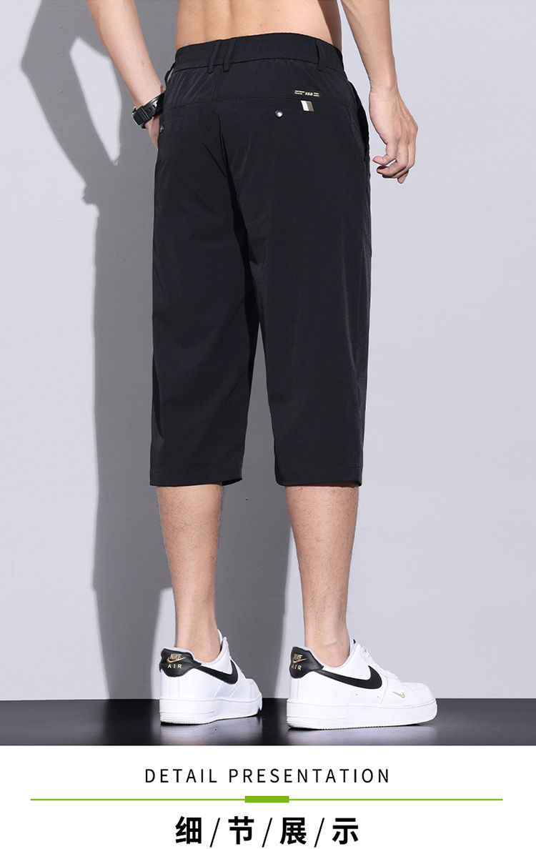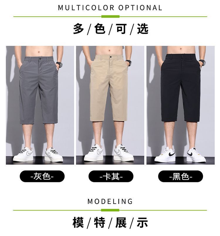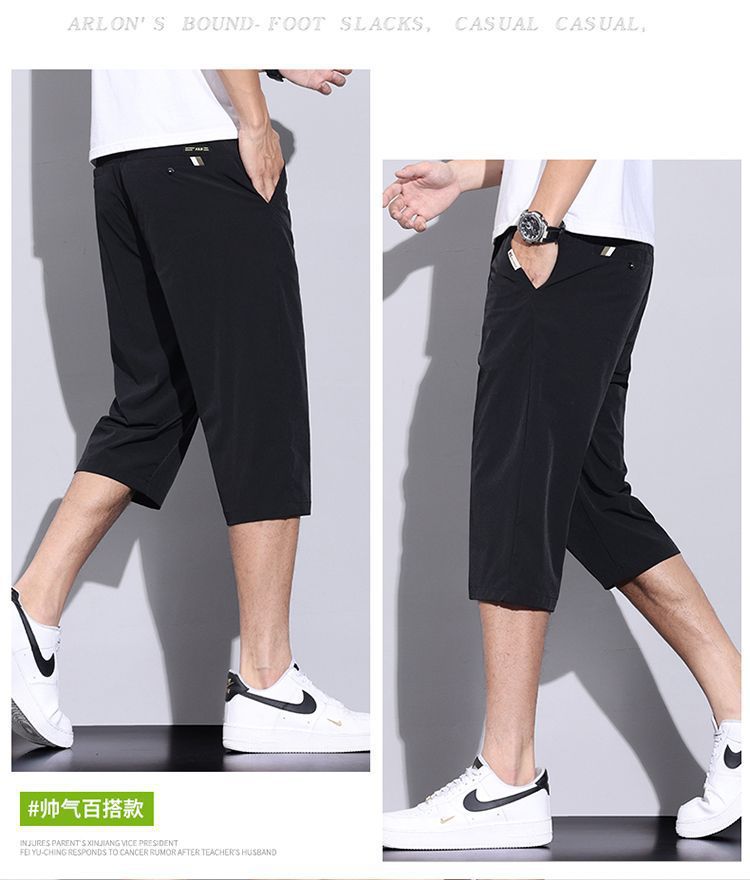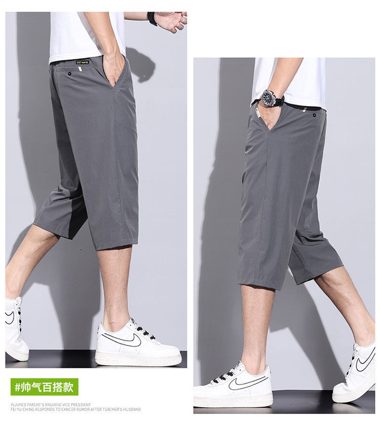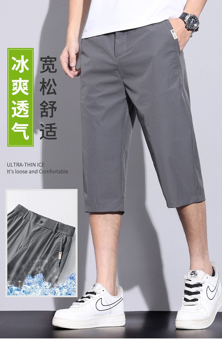 여름 남자 얇은 자른 바지 마이크로 탄성 빠른 건조 아이스 실크 바지 통기성 느슨한 스트레이트 올 매치 패션 캐주얼 바지