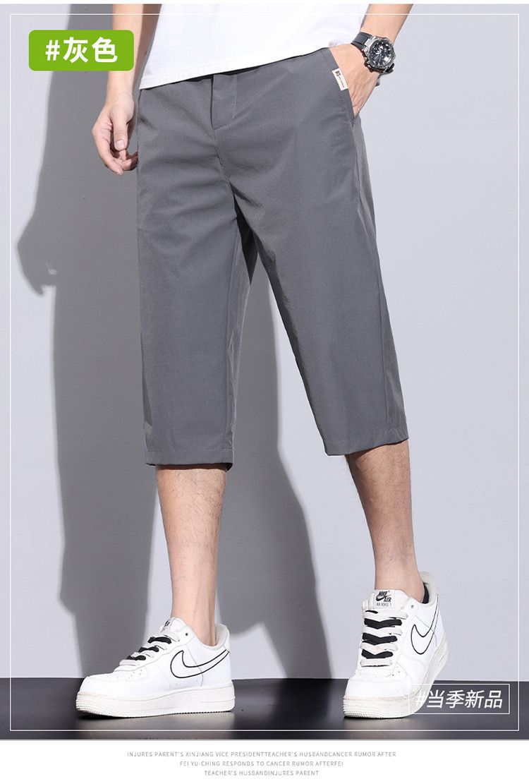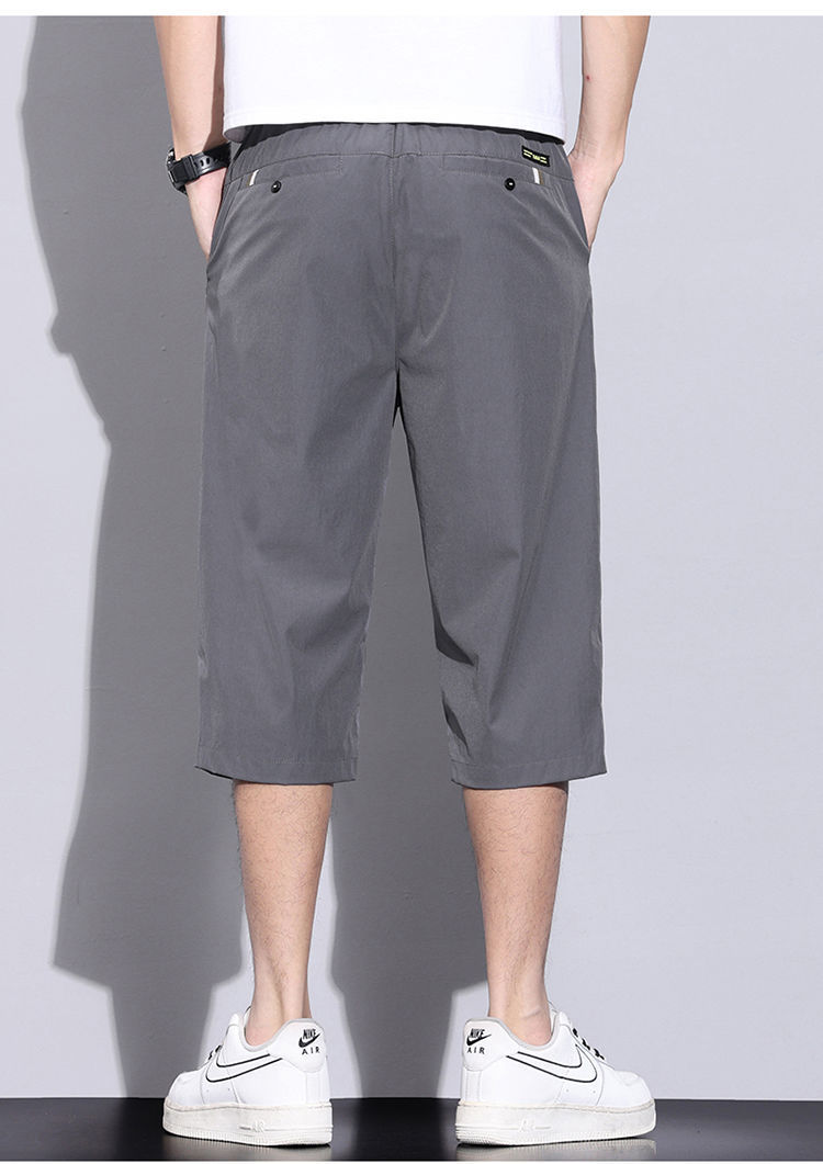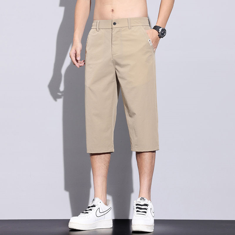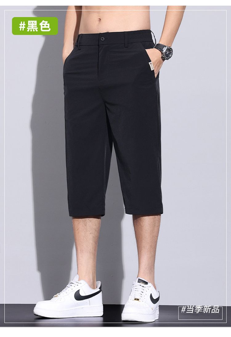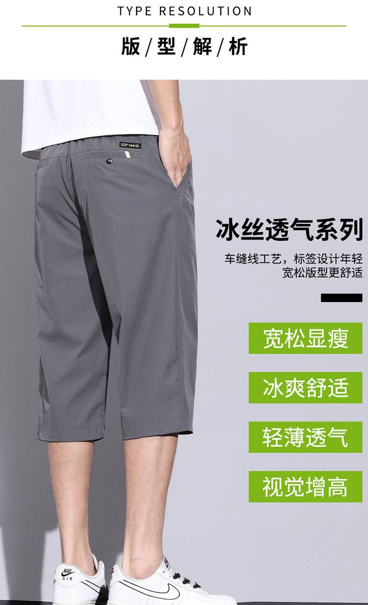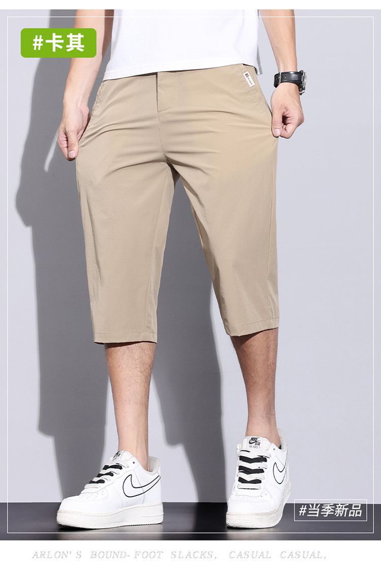 여름 남자 얇은 자른 바지 마이크로 탄성 빠른 건조 아이스 실크 바지 통기성 느슨한 스트레이트 올 매치 패션 캐주얼 바지