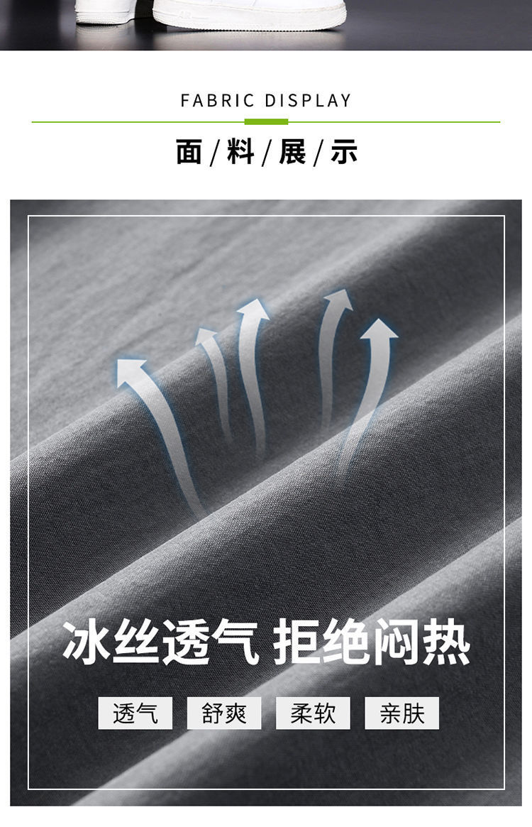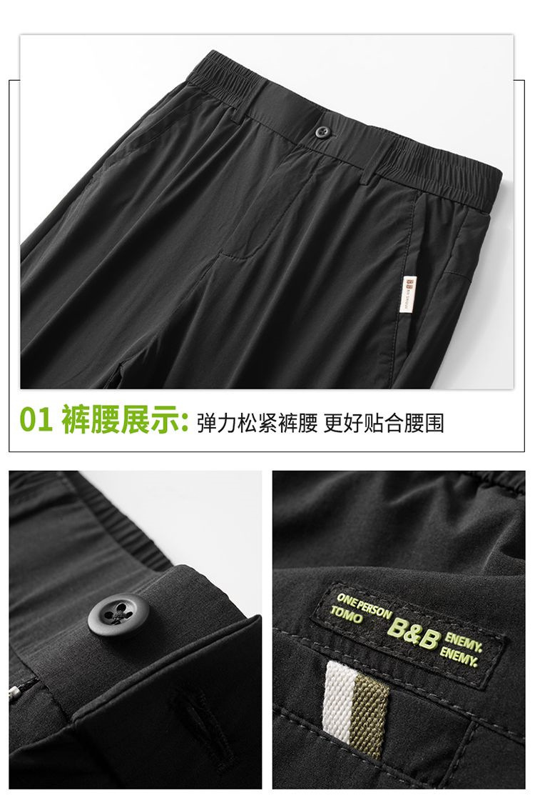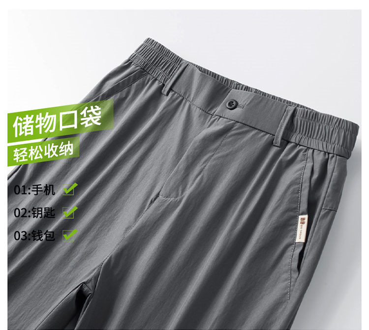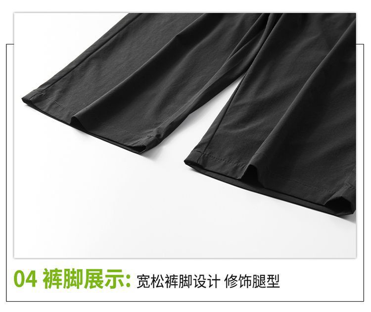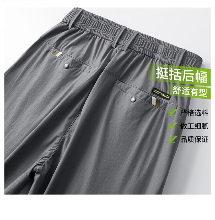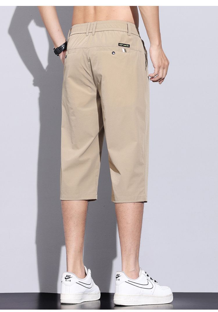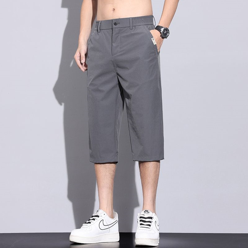여름 남자 얇은 자른 바지 마이크로 탄성 빠른 건조 아이스 실크 바지 통기성 느슨한 스트레이트 올 매치 패션 캐주얼 바지