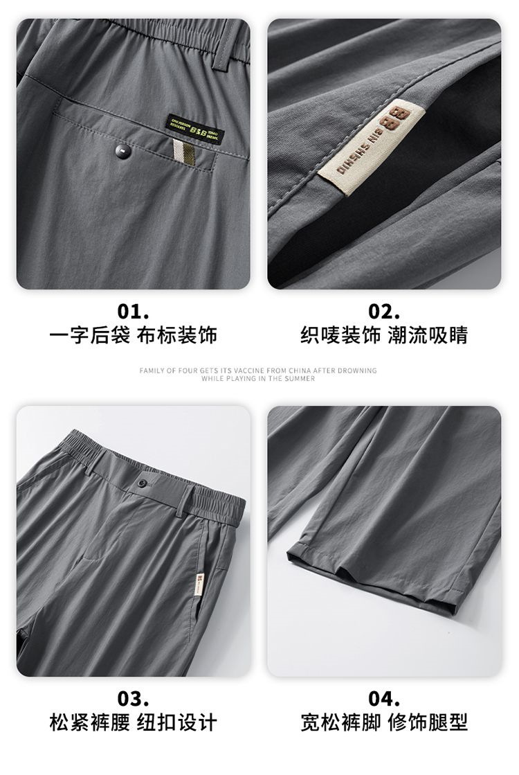 여름 남자 얇은 자른 바지 마이크로 탄성 빠른 건조 아이스 실크 바지 통기성 느슨한 스트레이트 올 매치 패션 캐주얼 바지스토어 가기