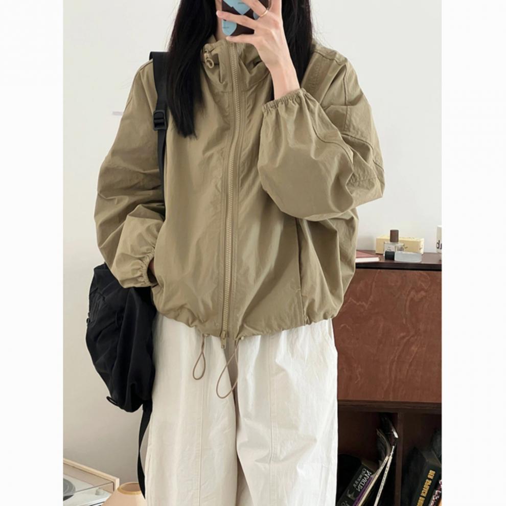 카키 짧은 등산 세트 재킷 여성의 봄과 가을 가을 얇은 방풍 작업 재킷 스포츠 탑스토어 가기