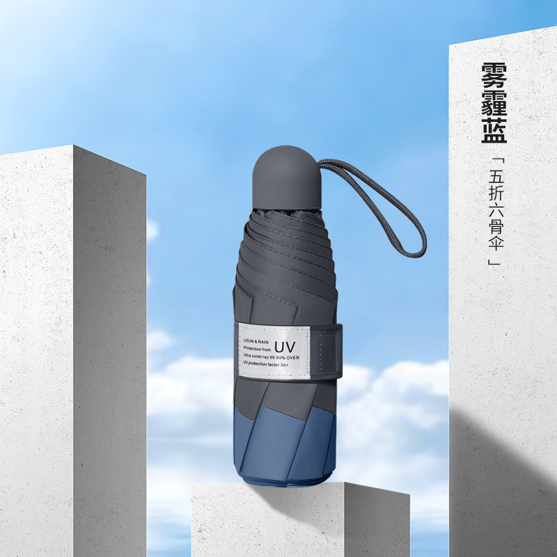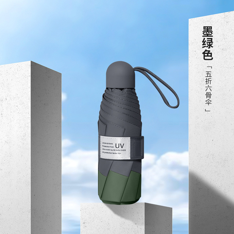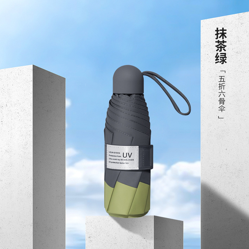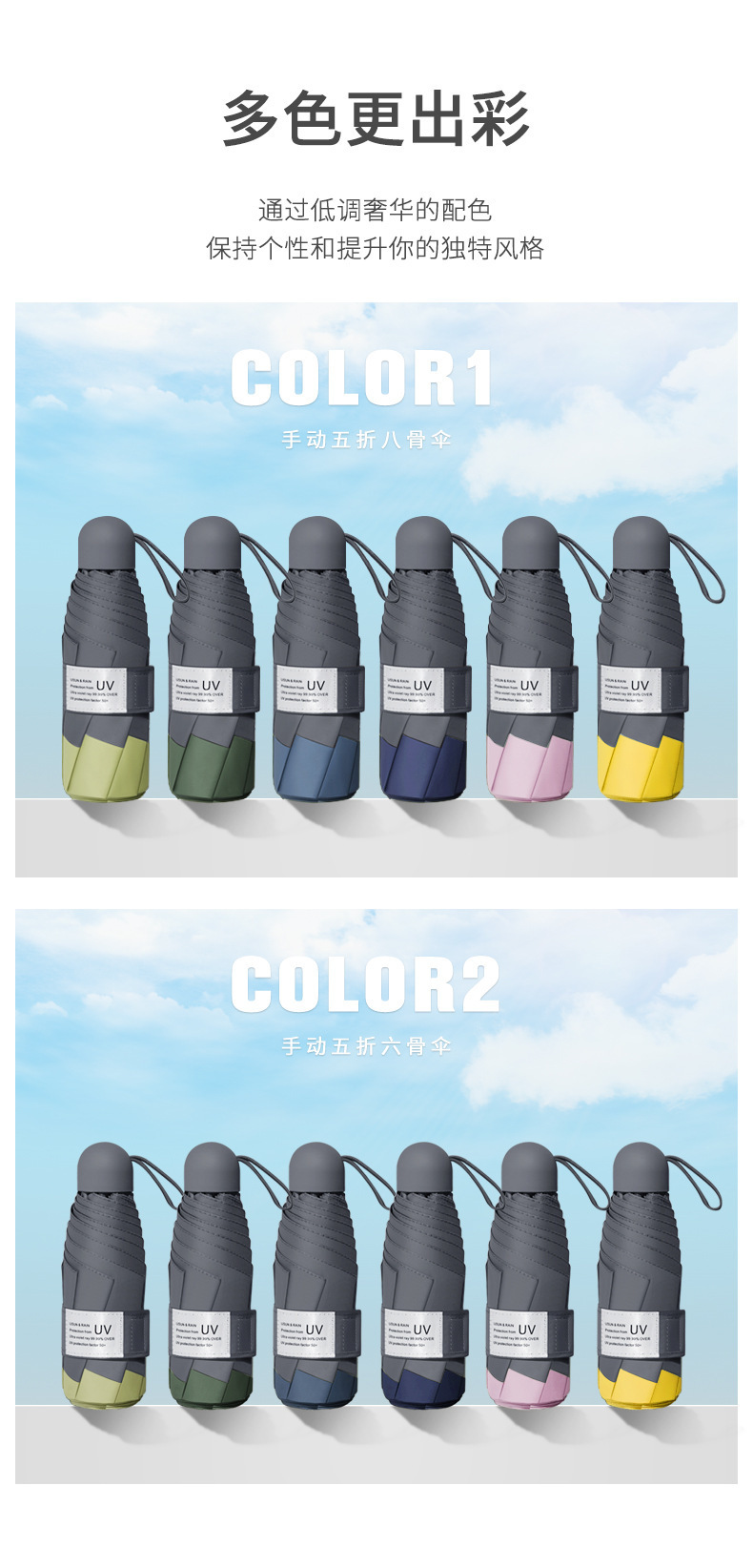도매 접합 컬러 8 본 5 배 우산 창조적 인 햇볕이 잘 드는 우산 단색 간단한 일본 우산 검은 고무 자외선 차양 우산
