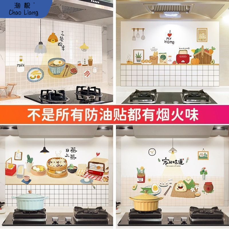 주방 안티 오일 스티커 스토브 자체 접착 벽지 방수 방습 내화 고온 후드 벽 스티커 벽스토어 가기