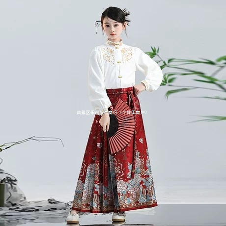 말 얼굴 치마 어린이 2025 새로운 고대 중국 스타일 한푸 어린 소녀 탕 세트 세트 소녀 고대 봄 도매