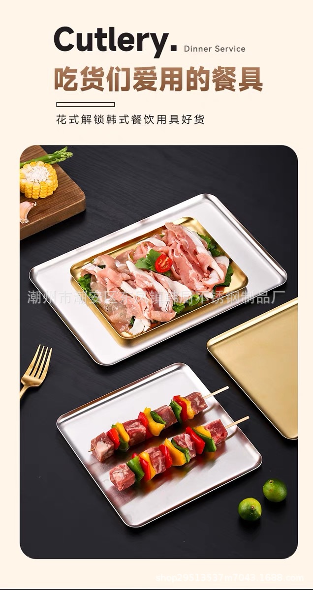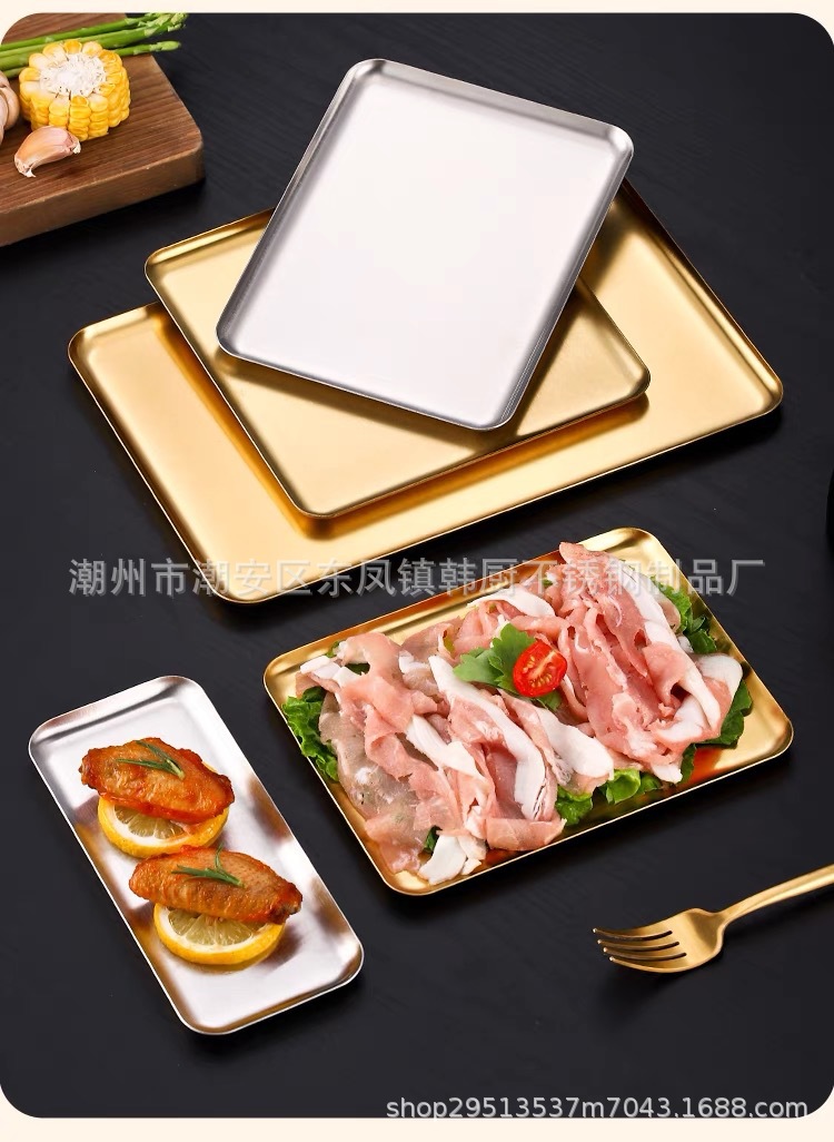 한국식 304 스테인레스 스틸 직사각형 플레이트 가정용 바베큐 플레이트 야외 트레이 바베큐 플레이트 초밥 플레이트 케이크 플레이트