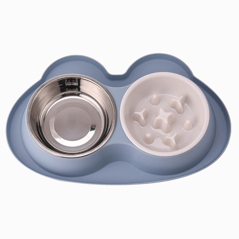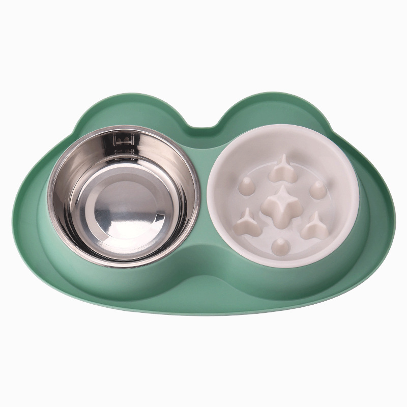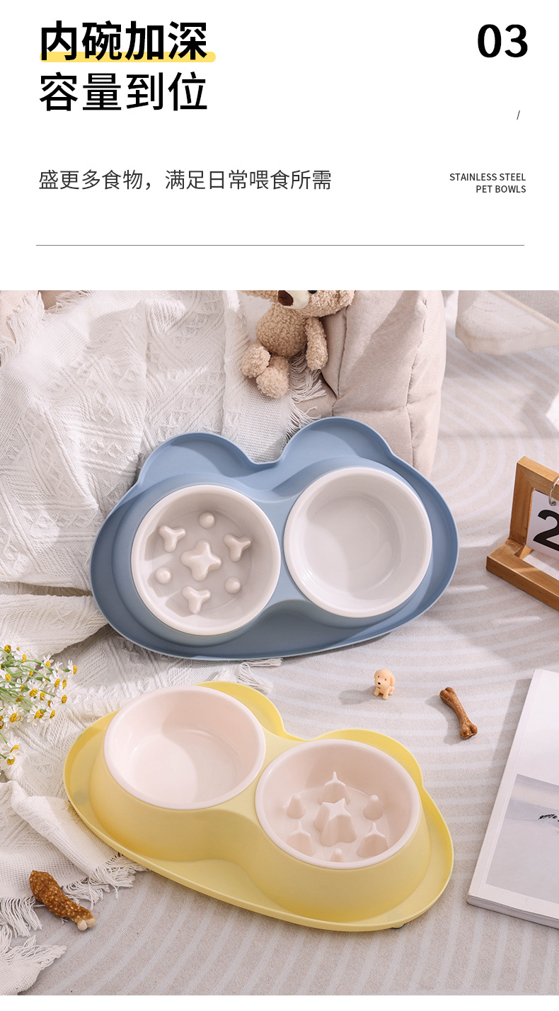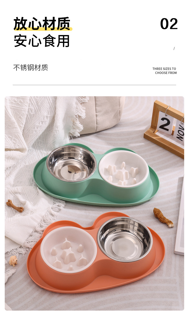 애완 동물 느린 음식 그릇 고양이 스테인레스 스틸 더블 그릇 질식 방지 음주 그릇 느린 음식 개 그릇 누출 방지 식품 노크 개 그릇