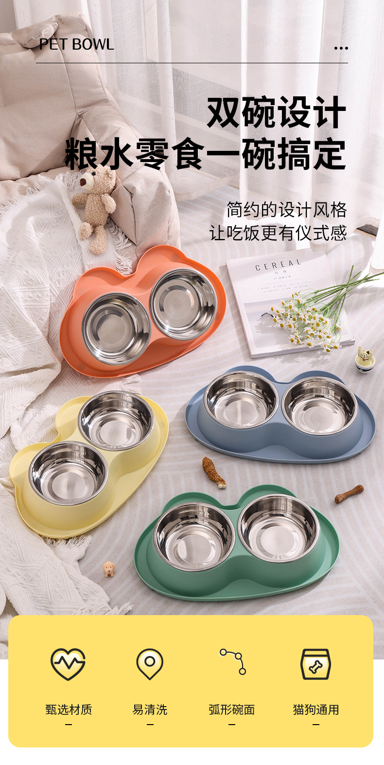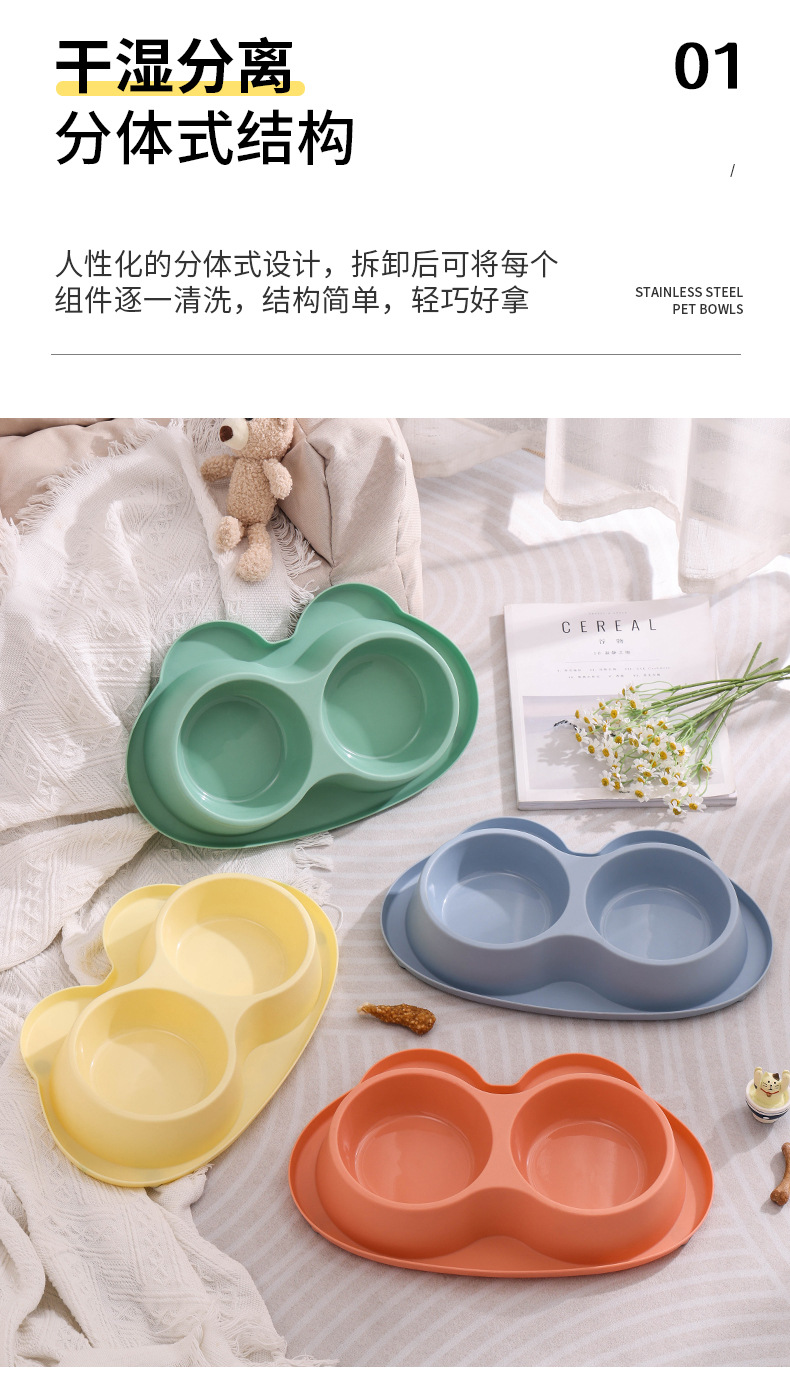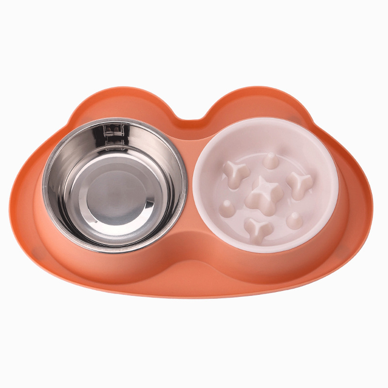 애완 동물 느린 음식 그릇 고양이 스테인레스 스틸 더블 그릇 질식 방지 음주 그릇 느린 음식 개 그릇 누출 방지 식품 노크 개 그릇