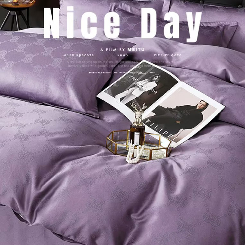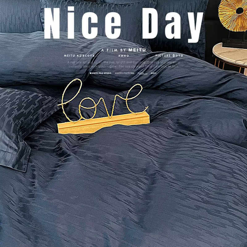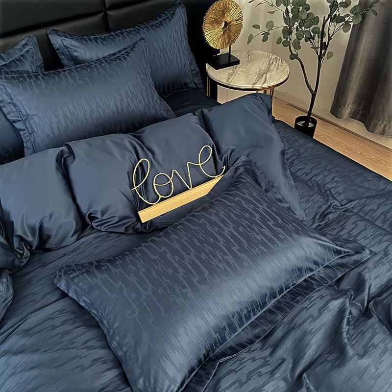 2025 새로운 60 롱 스테이플 코튼 자카드 4 피스 신장 1.8m 시트 4 피스 세트 Xinghe 사파이어 블루-스토어 가기