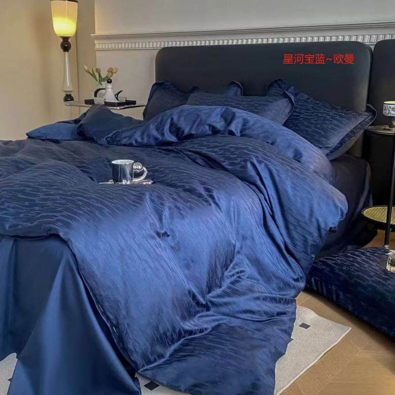 2025 새로운 60 롱 스테이플 코튼 자카드 4 피스 신장 1.8m 시트 4 피스 세트 Xinghe 사파이어 블루-