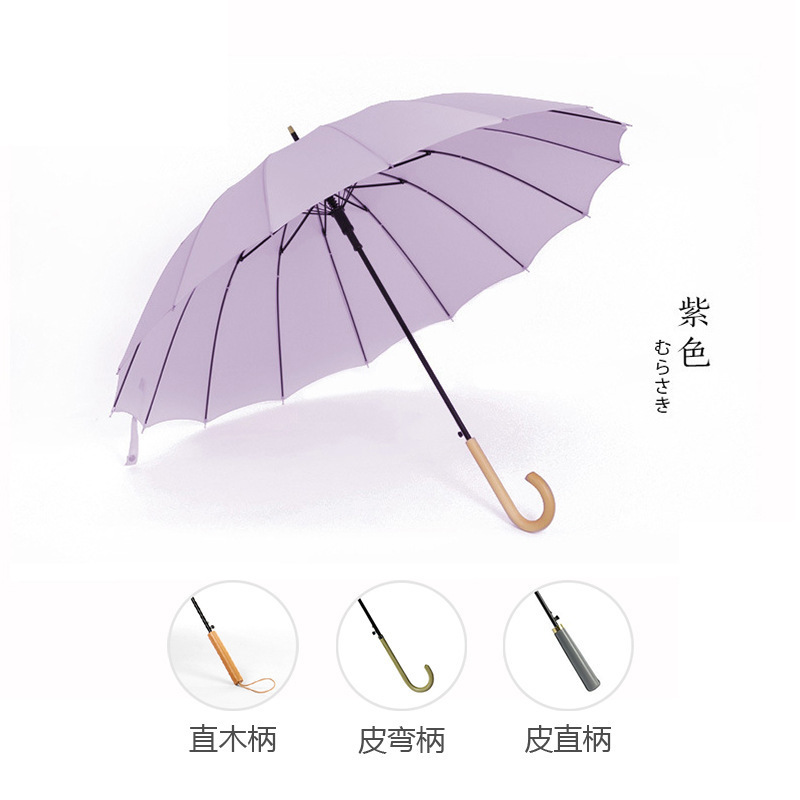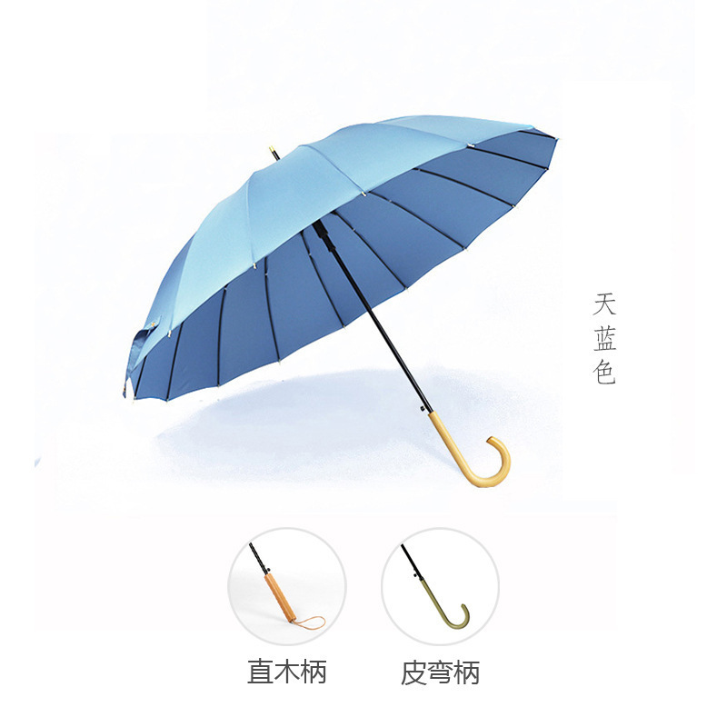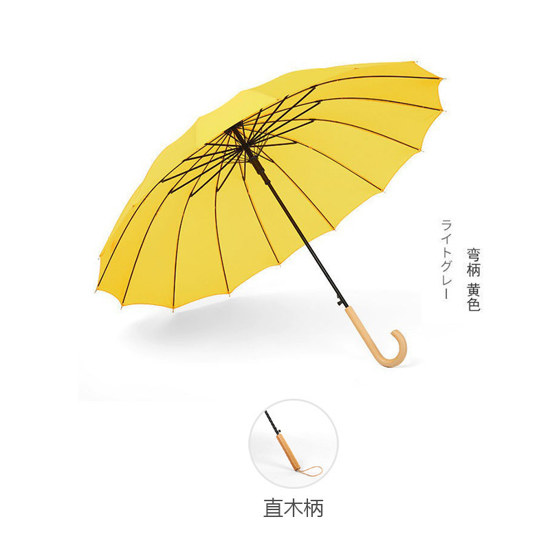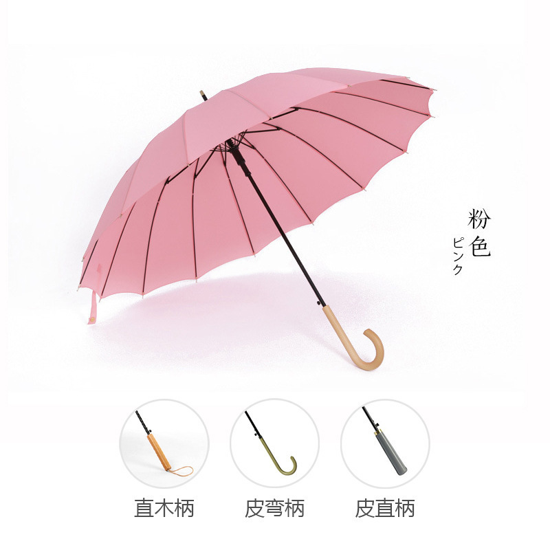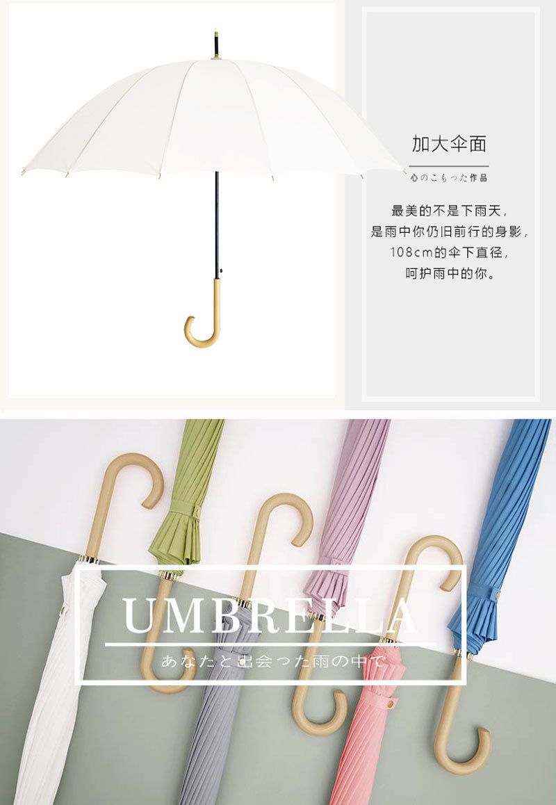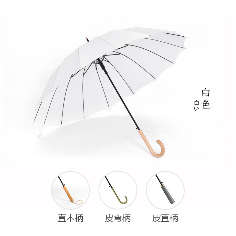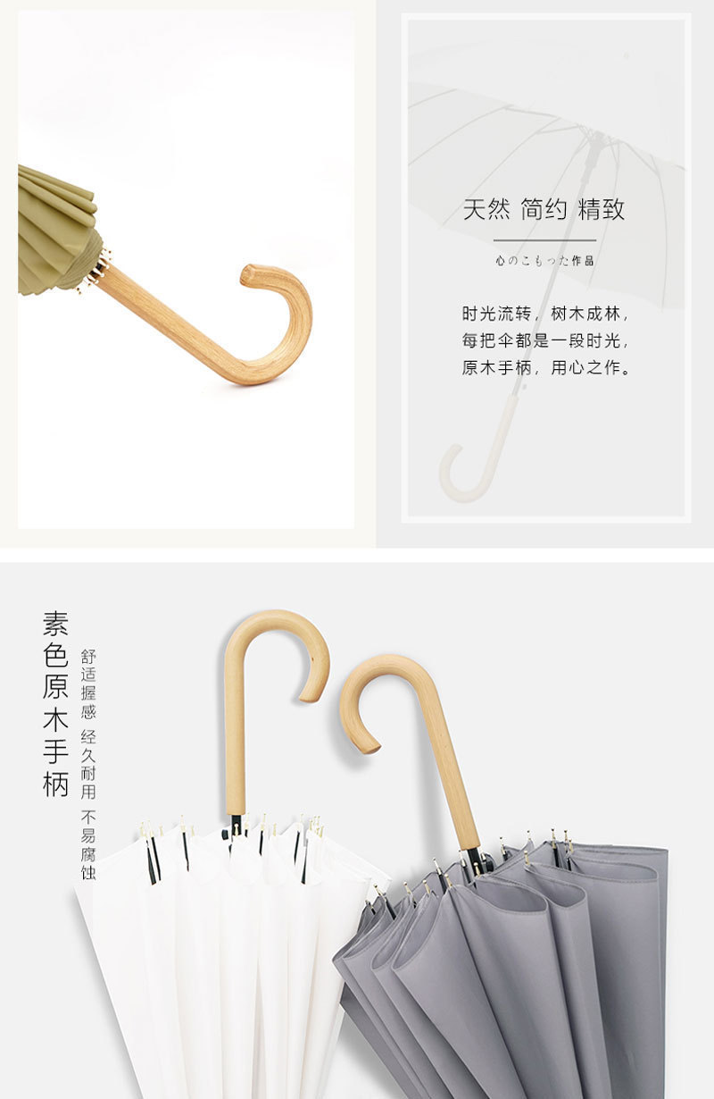 긴 손잡이 16 뼈 우산 자동 우산 광고 우산 로고 도매 작은 신선한 나무 손잡이 글자 후크 우산스토어 가기