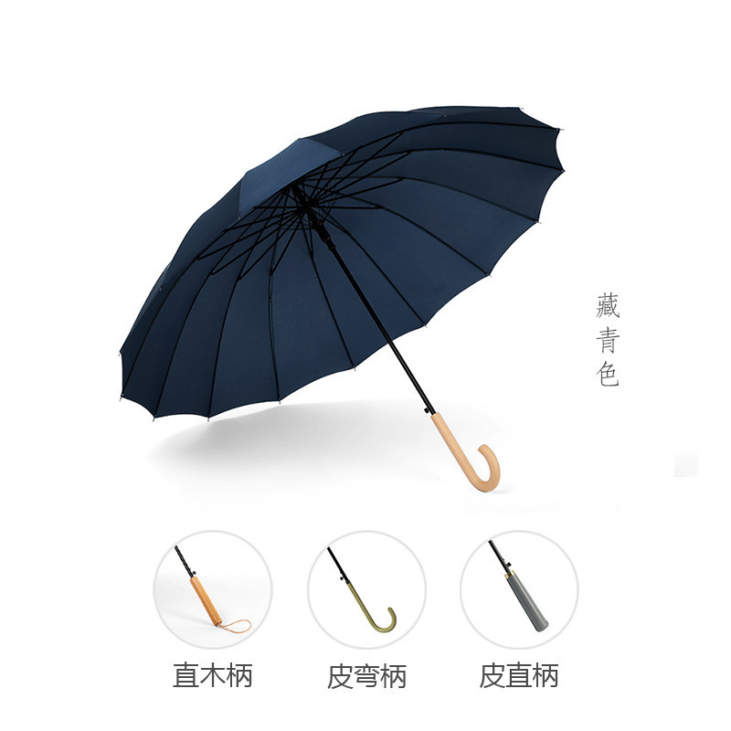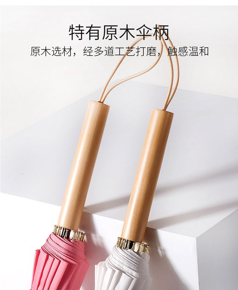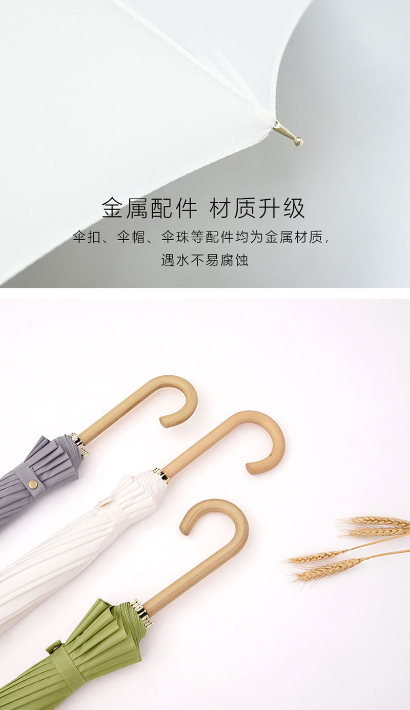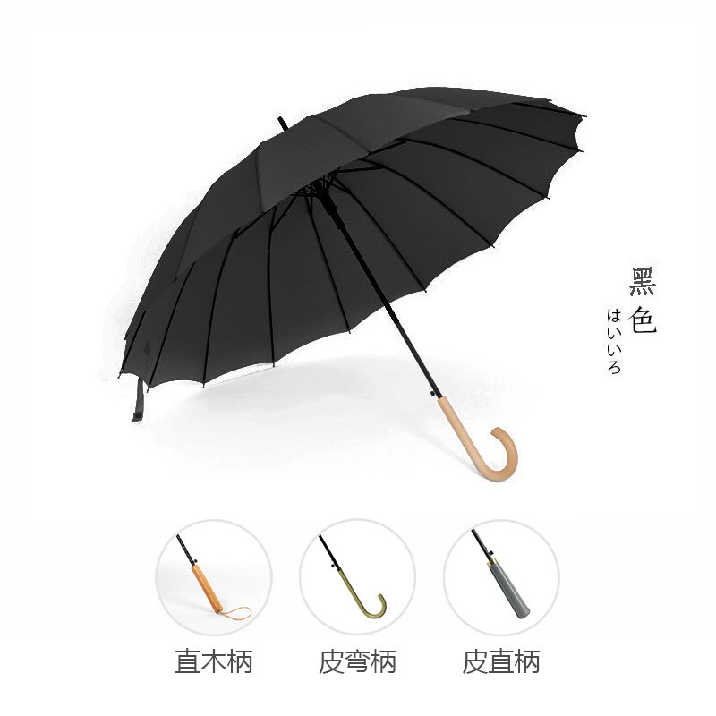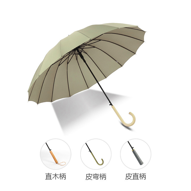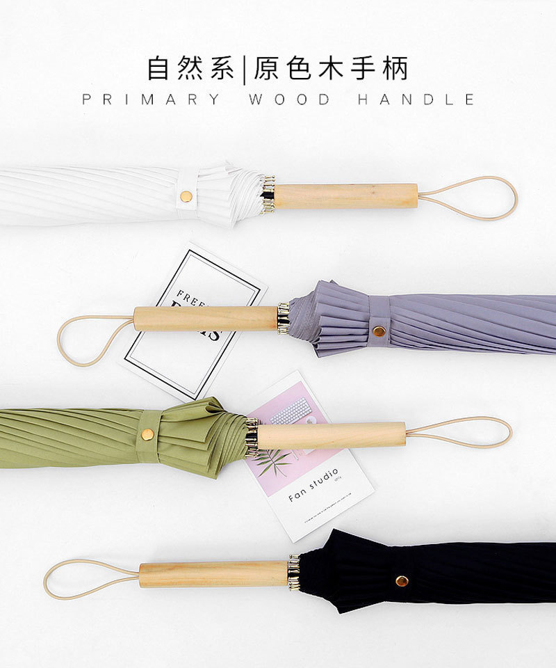 긴 손잡이 16 뼈 우산 자동 우산 광고 우산 로고 도매 작은 신선한 나무 손잡이 글자 후크 우산스토어 가기