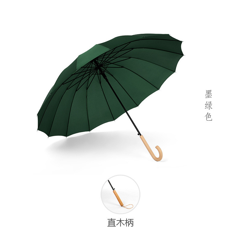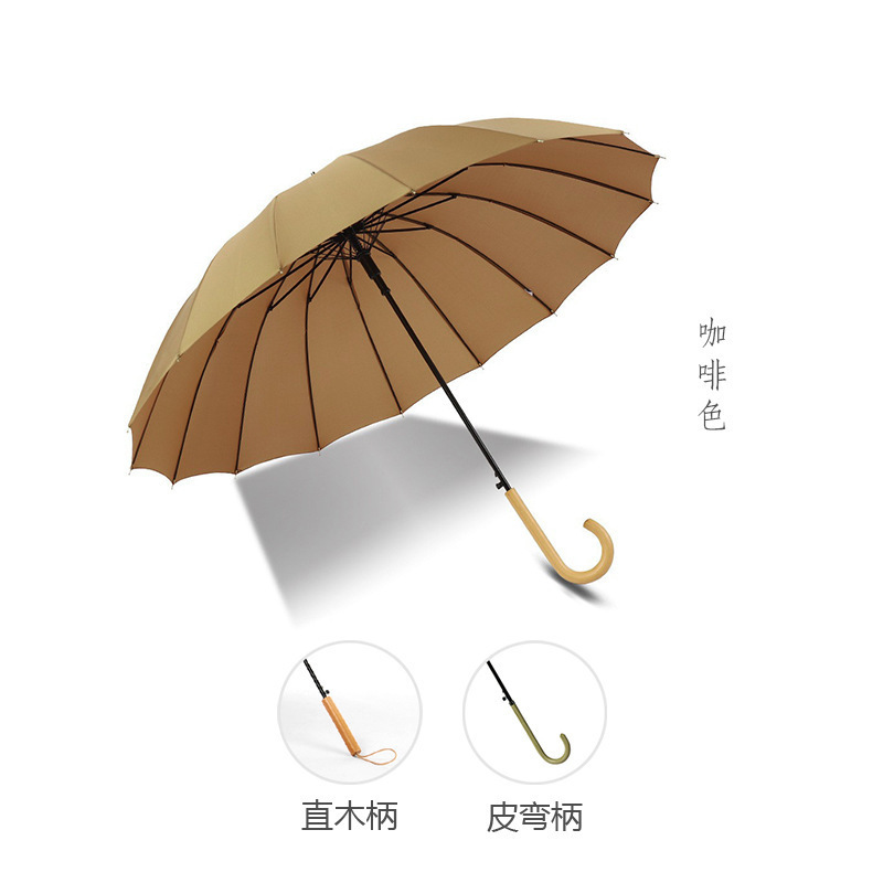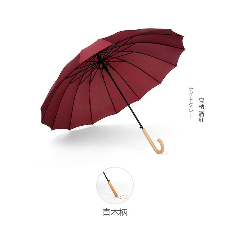 긴 손잡이 16 뼈 우산 자동 우산 광고 우산 로고 도매 작은 신선한 나무 손잡이 글자 후크 우산