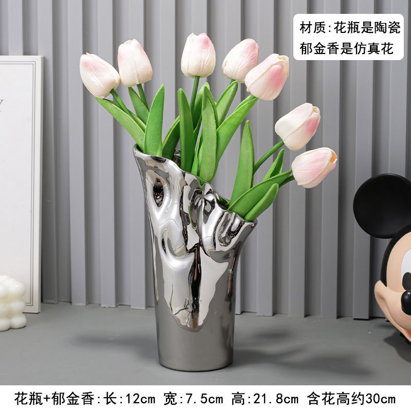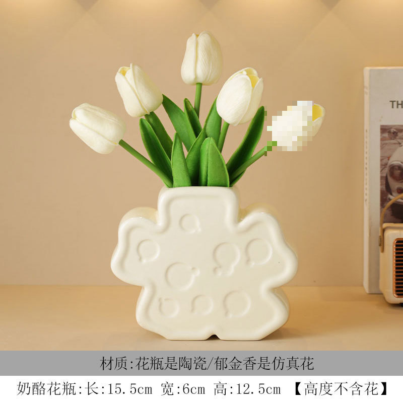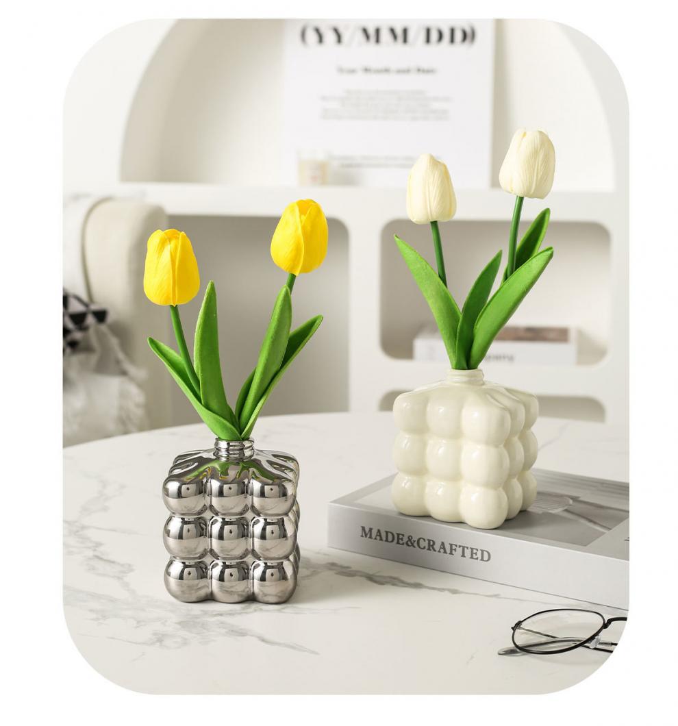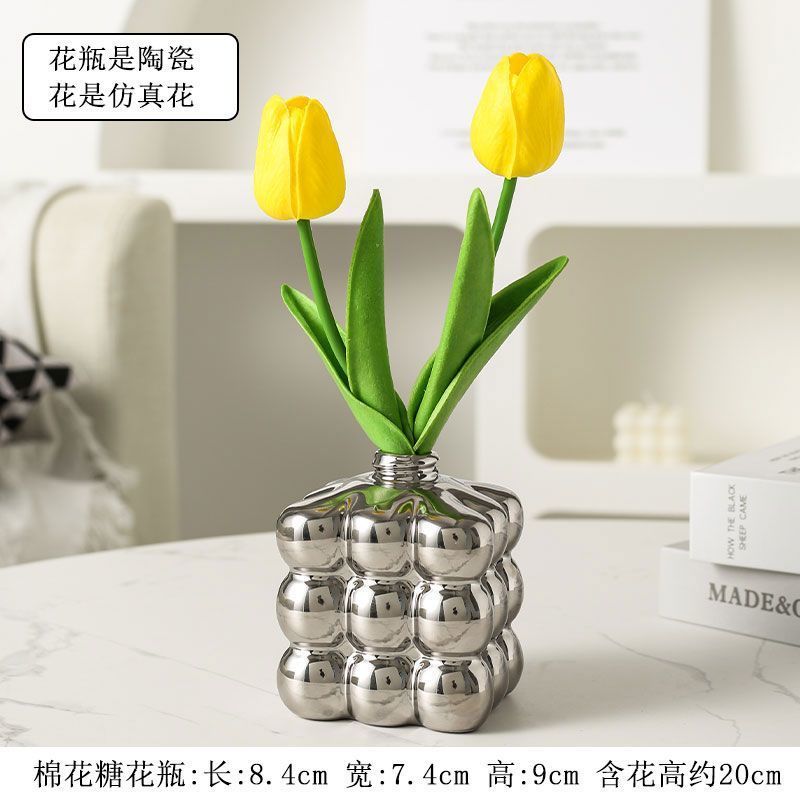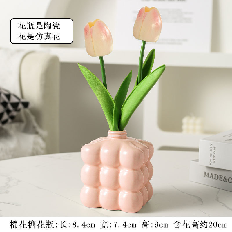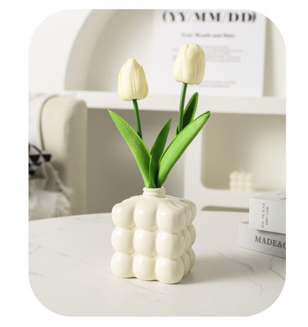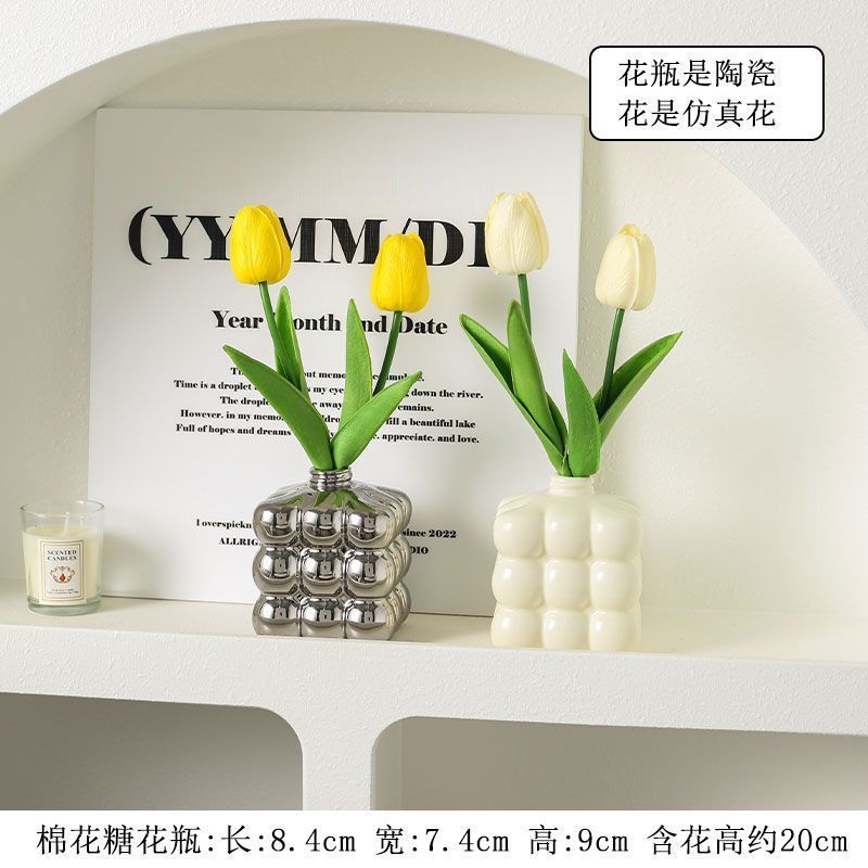 ∝ Ins 바람 튤립 꽃병 사무실 시뮬레이션 고급 노르딕 젖은 가짜 꽃 장식 거실 식당 꽃 진자
