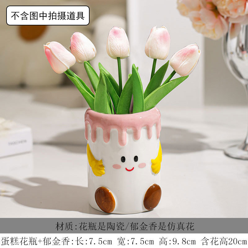 • ◆★◆핑크 케이크 꽃병 + 튤립◆★◆