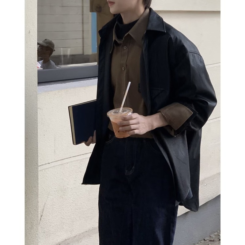 2025 한국 봄과 여름 레트로 가죽 자켓 고급 센스 가죽 자켓 간단한 가죽 셔츠 재킷스토어 가기