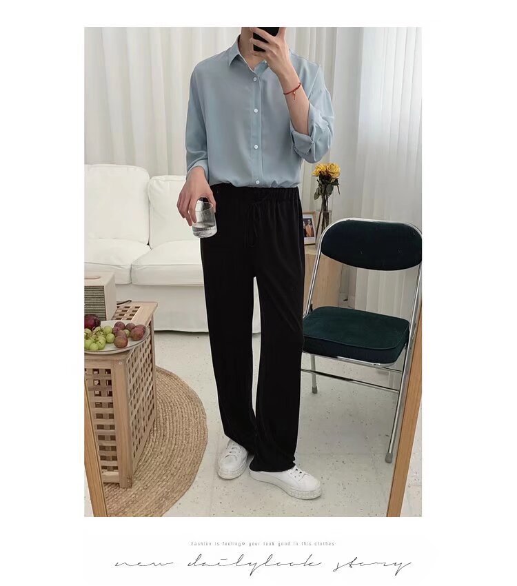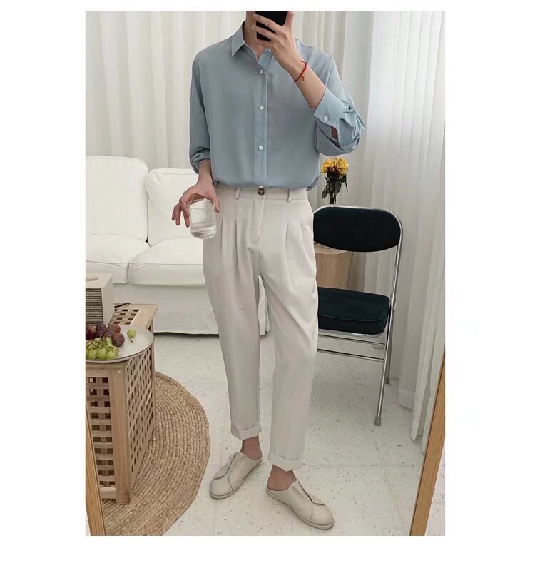 안개 블루 미닛 스타일 셔츠 남자 긴팔 한국 스타일 유행 느슨한 봄과 여름 하이 엔드 스타일 게으른 스타일 캐주얼 셔츠