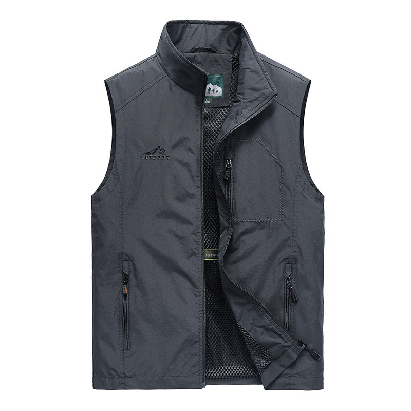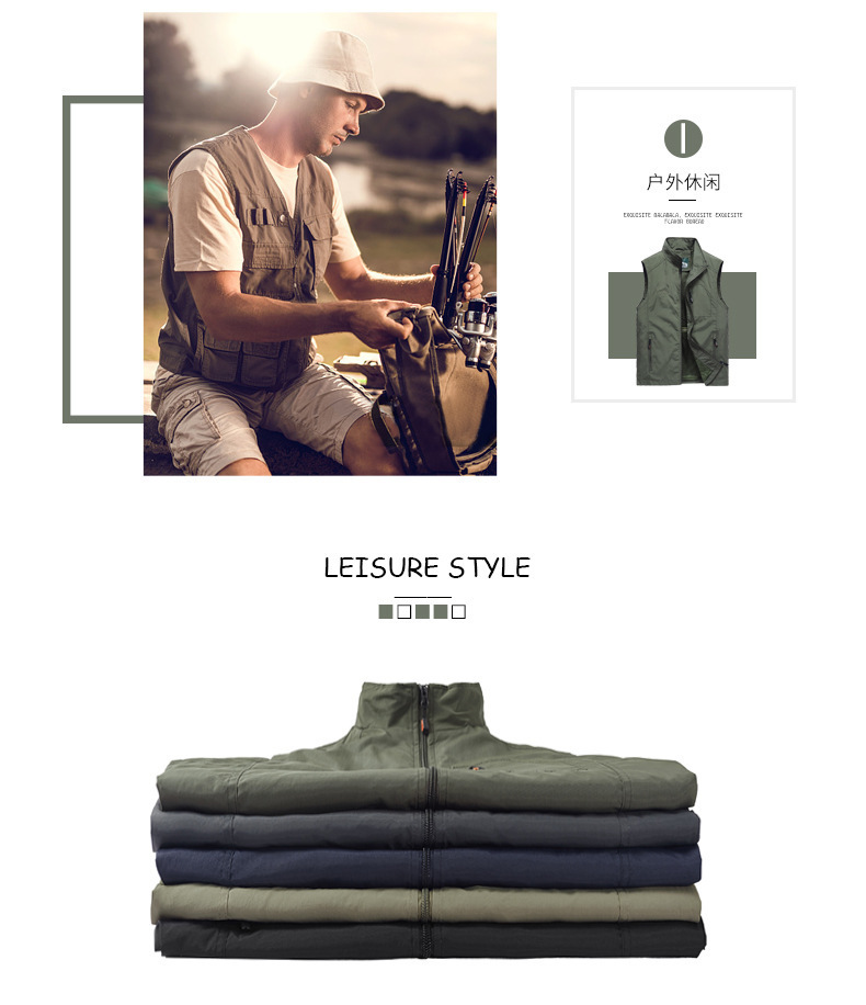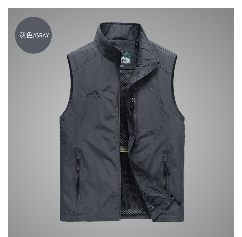 봄과 여름 새로운 남성 간단한 칼라 낚시 조끼 남자 플러스 사이즈 야외 레저 빠른 건조 조끼 7988A 회색
