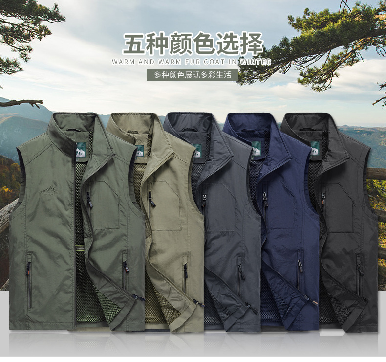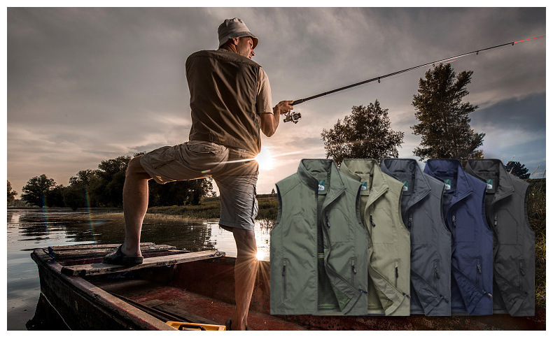 봄과 여름 새로운 남성 간단한 칼라 낚시 조끼 남자 플러스 사이즈 야외 레저 빠른 건조 조끼 7988A 회색스토어 가기