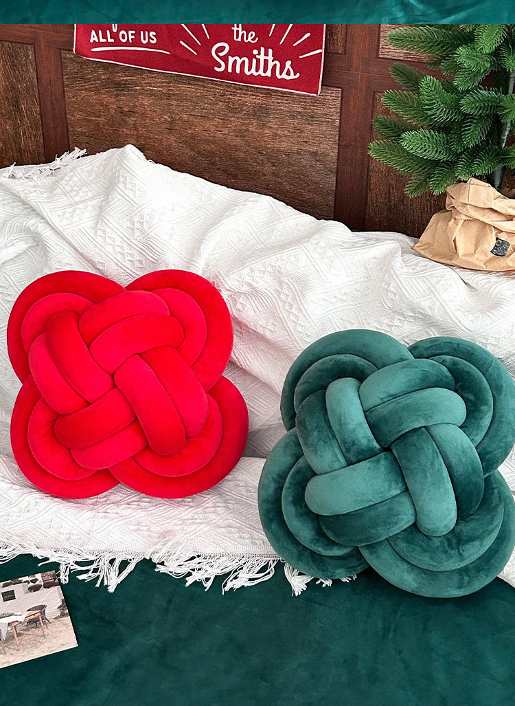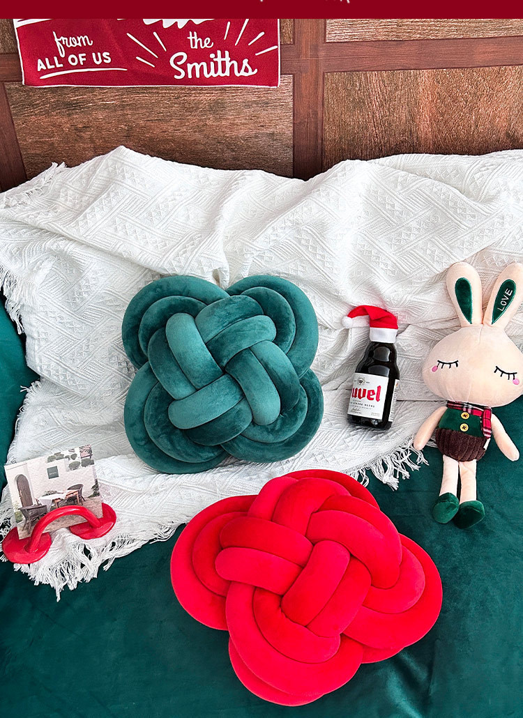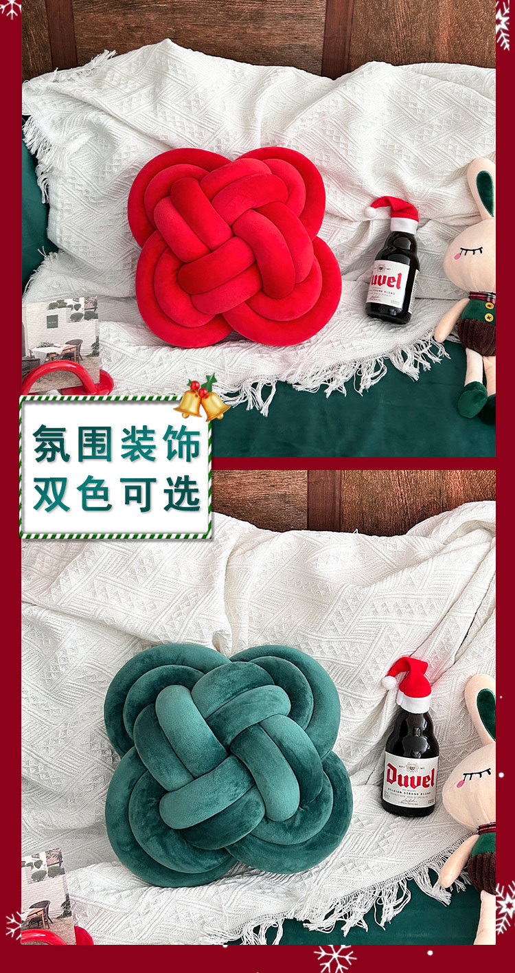 亚马逊跨境圣诞节抱枕ins氛围感圆球形编织knot沙发靠枕飘窗靠垫