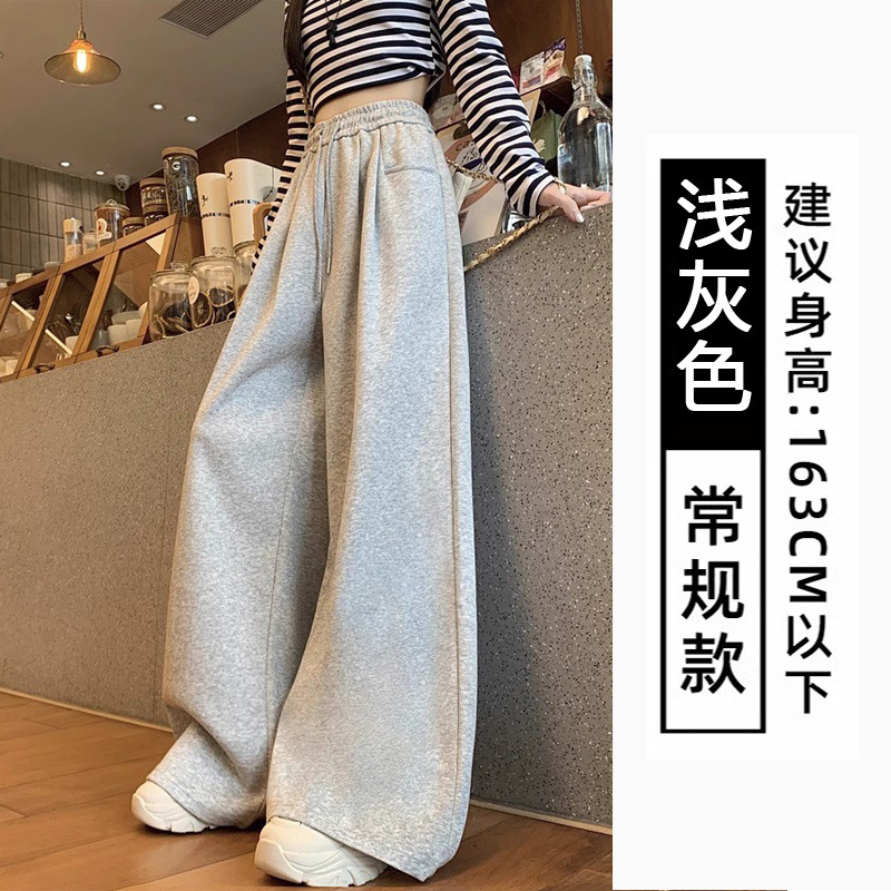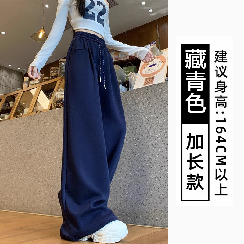 스포츠 바지 여자의 봄과 가을 새로운 높은 허리 슬리밍 스트레이트 느슨한 올매치 캐주얼 드로우 스트링 느슨한 넓은 다리 바지