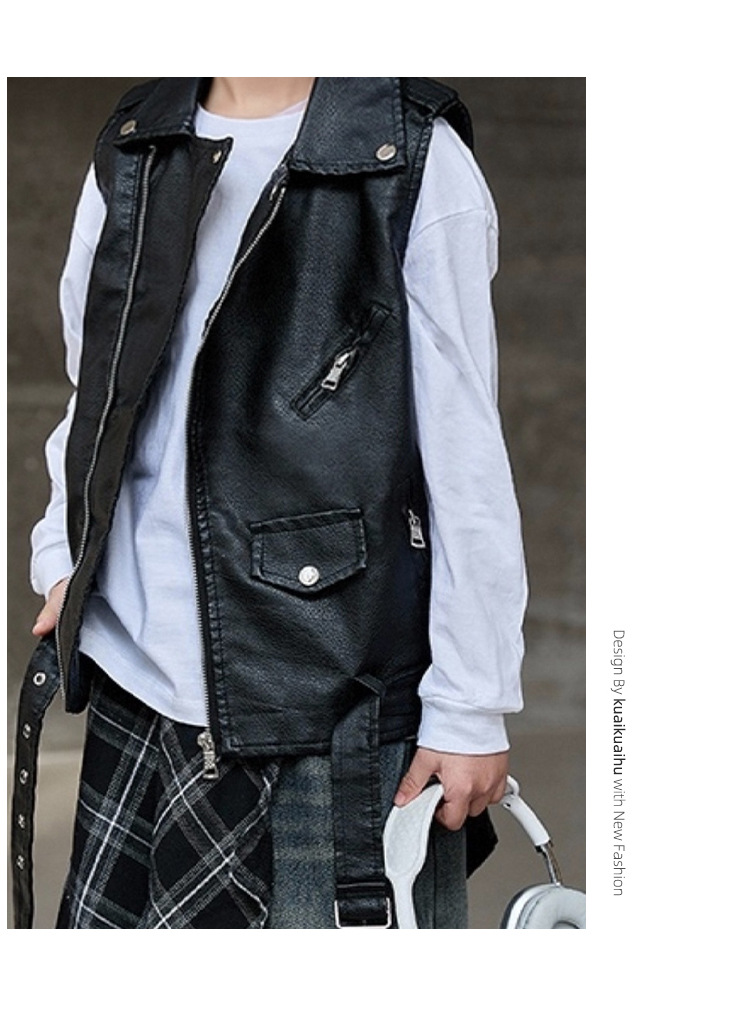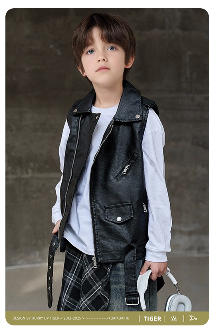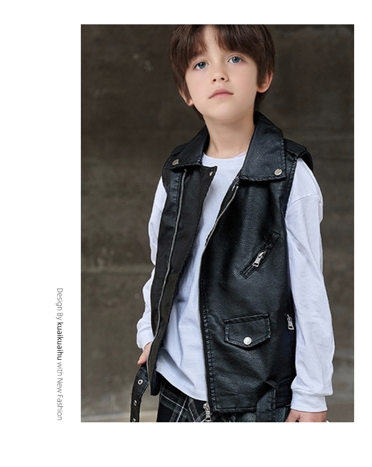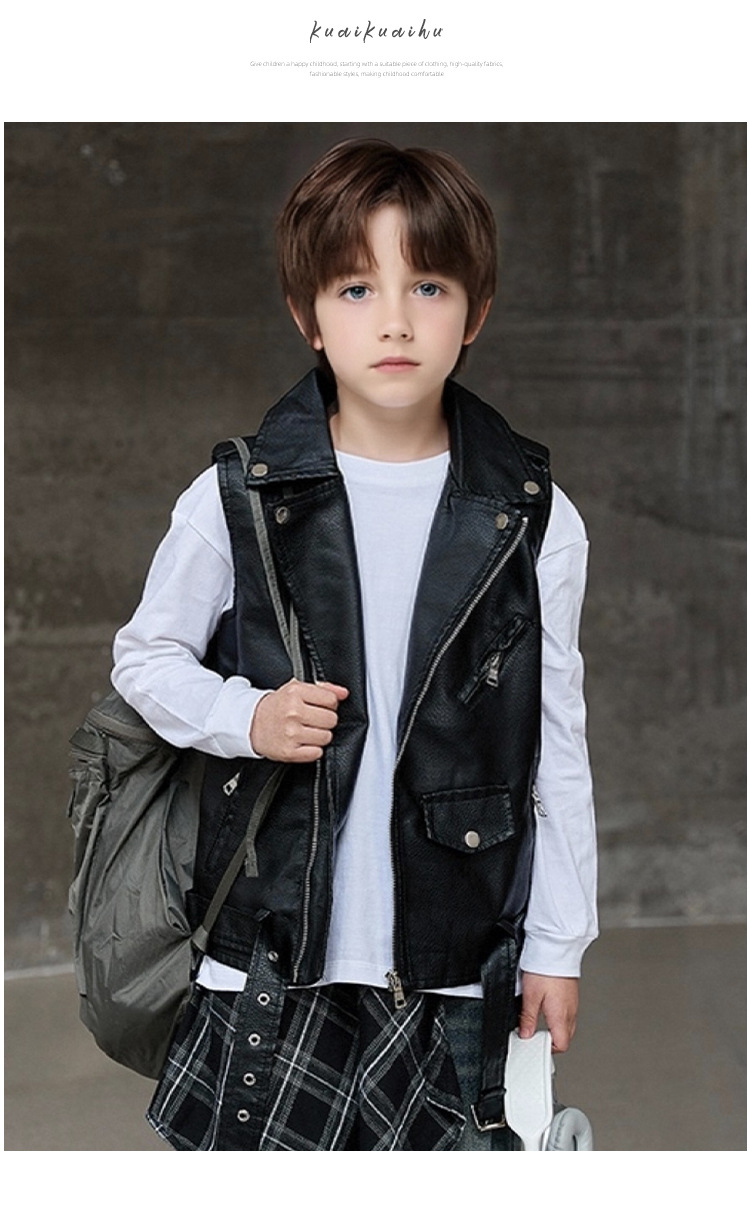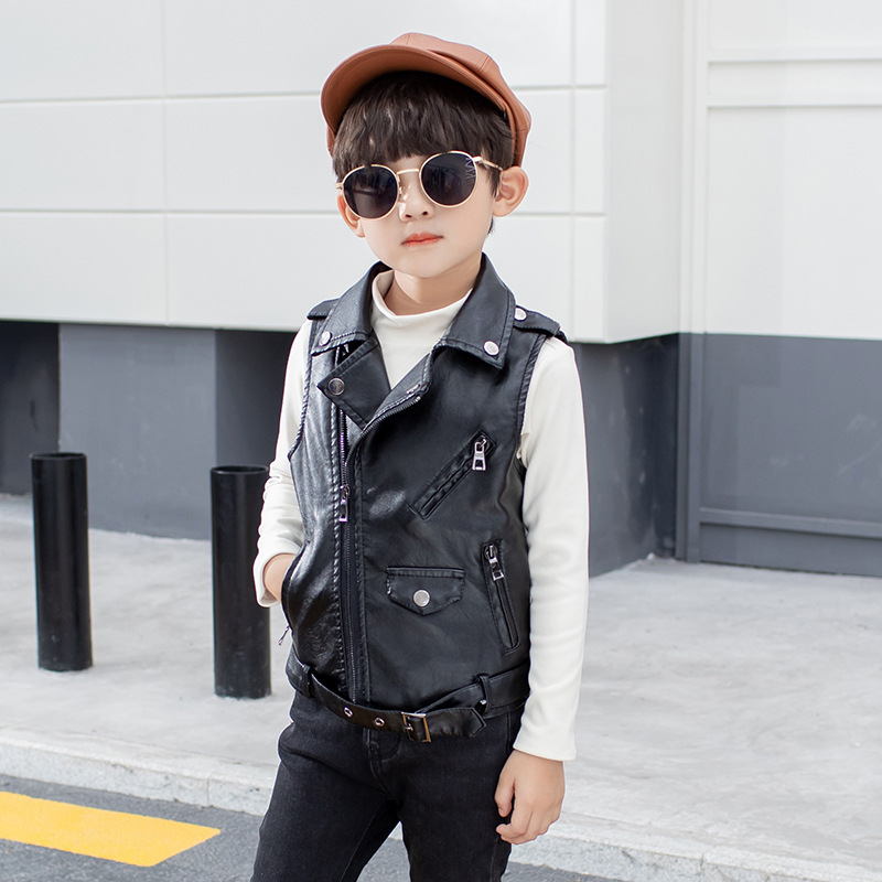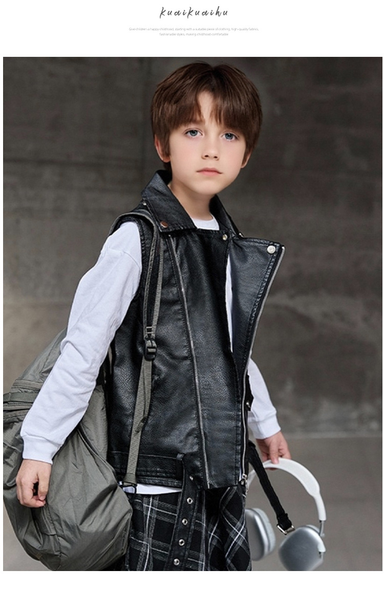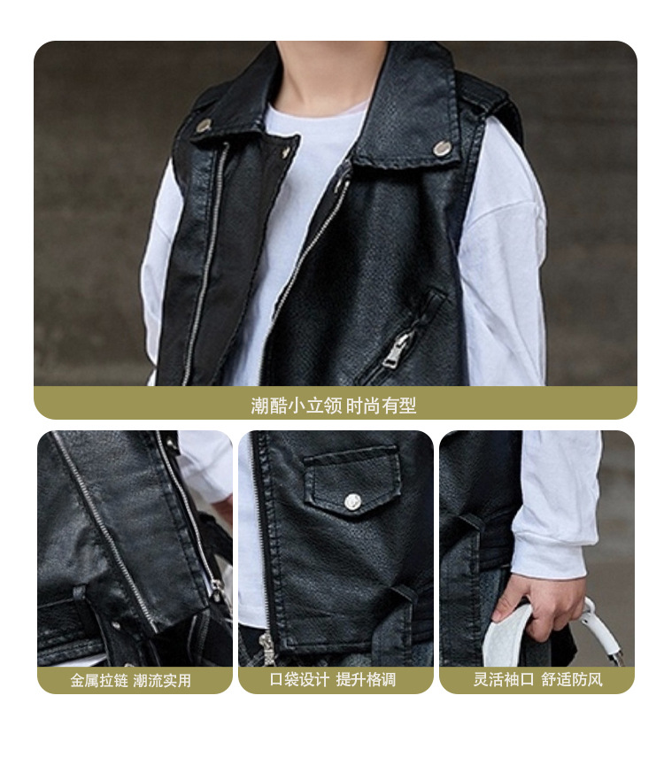 아동용 가죽 조끼, 다용도 바이커 칼라, 봄 가을 신상 PU 가죽 남녀 아동 조끼 재킷스토어 가기
