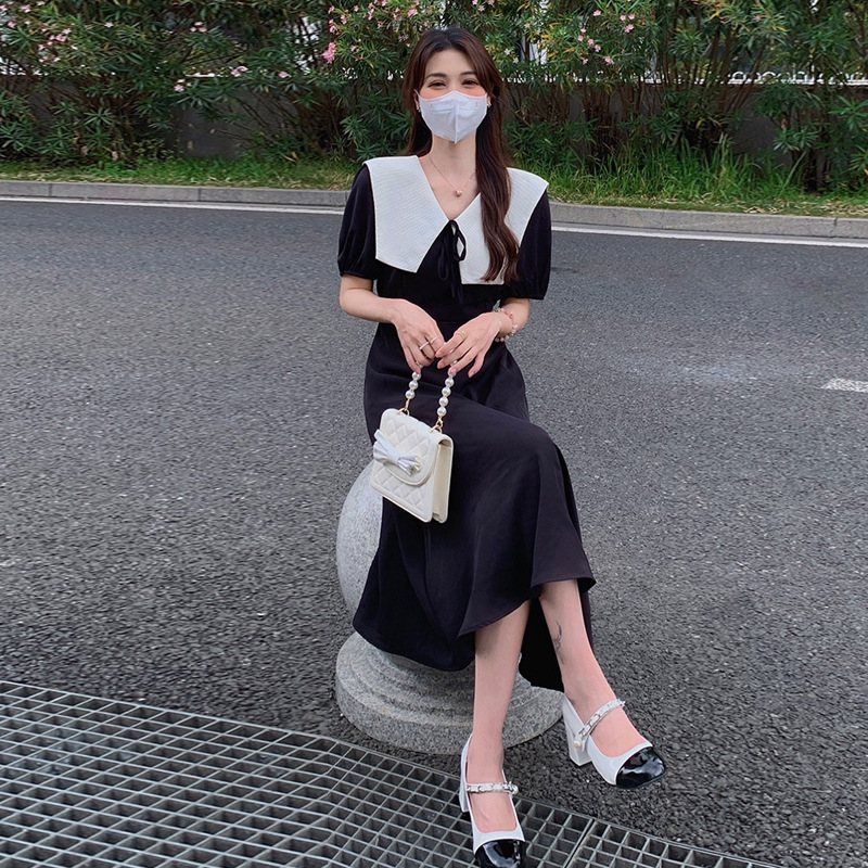 프랑스 스타일 헵번 스타일 블랙 작은 원피스 여성 2025 새로운 스타일 작은 검은 원피스 우아한 슬림 A 라인 스커트 여름스토어 가기