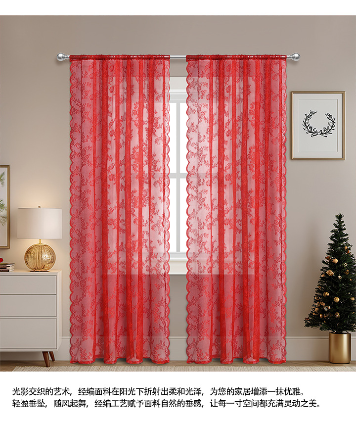 1pc 붉은 꽃 레이스 목가적 인 스타일 거즈 커튼 거실 침실 발코니 빨간색 독일 커튼 투명 커튼
