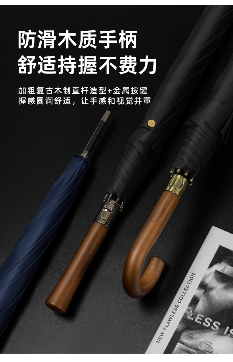 나무 손잡이 후크 영국 빈티지 긴 손잡이 우산 남자의 간단한 방풍 자동 대형 더블 우산 선물 우산 맞춤형스토어 가기