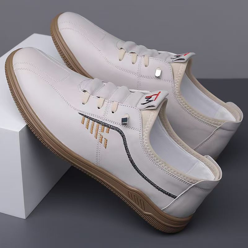 화이트 슈즈 남성 봄 새로운 패션 올 매치 가죽 캐주얼 슬립 온 부드러운 밑창 아빠의 더그 슈즈