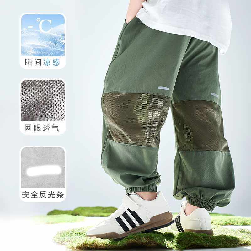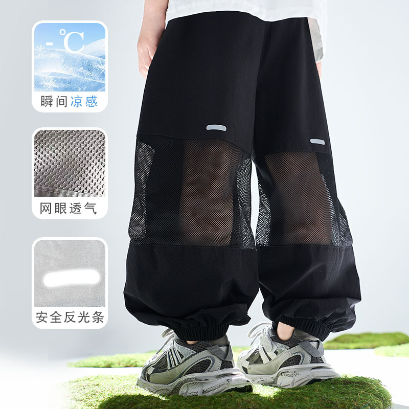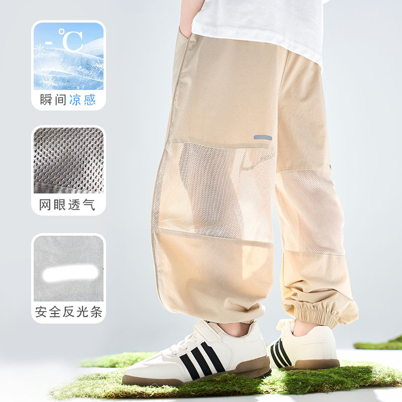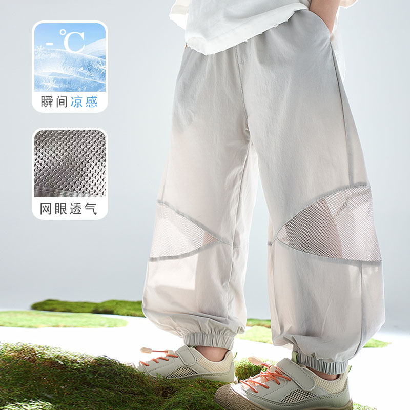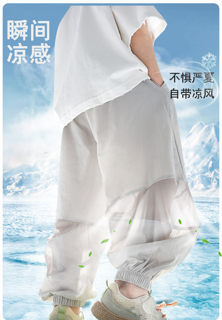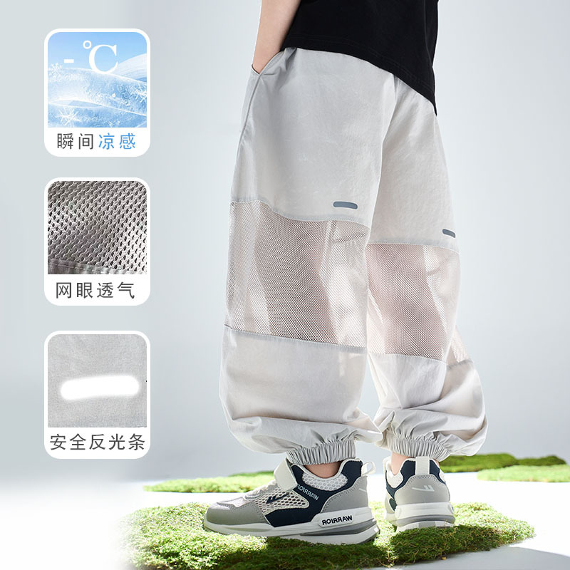 어린이 여름 아이스 실크 스포츠 빠른 건조 바지 소년 바지 메쉬 메쉬 메쉬 안티 모기 바지 큰 어린이와 소녀 캐주얼 바지 여름 착용