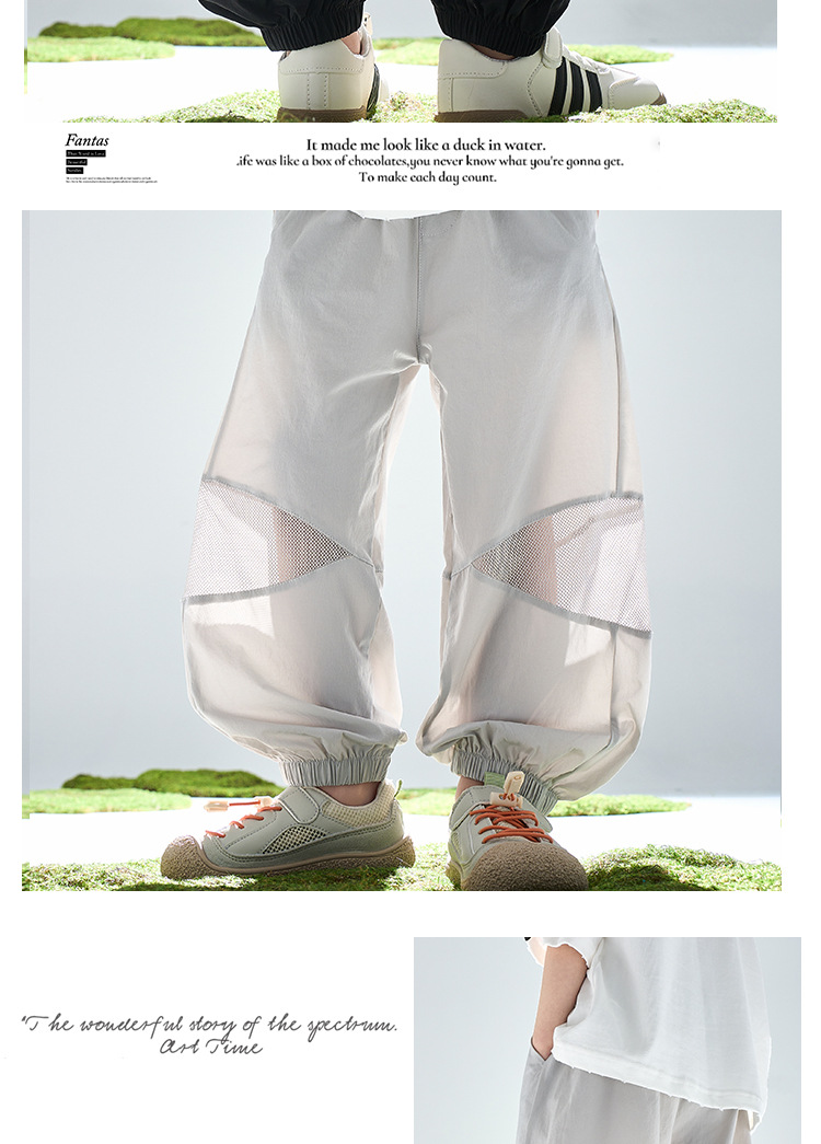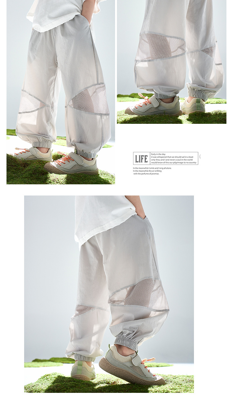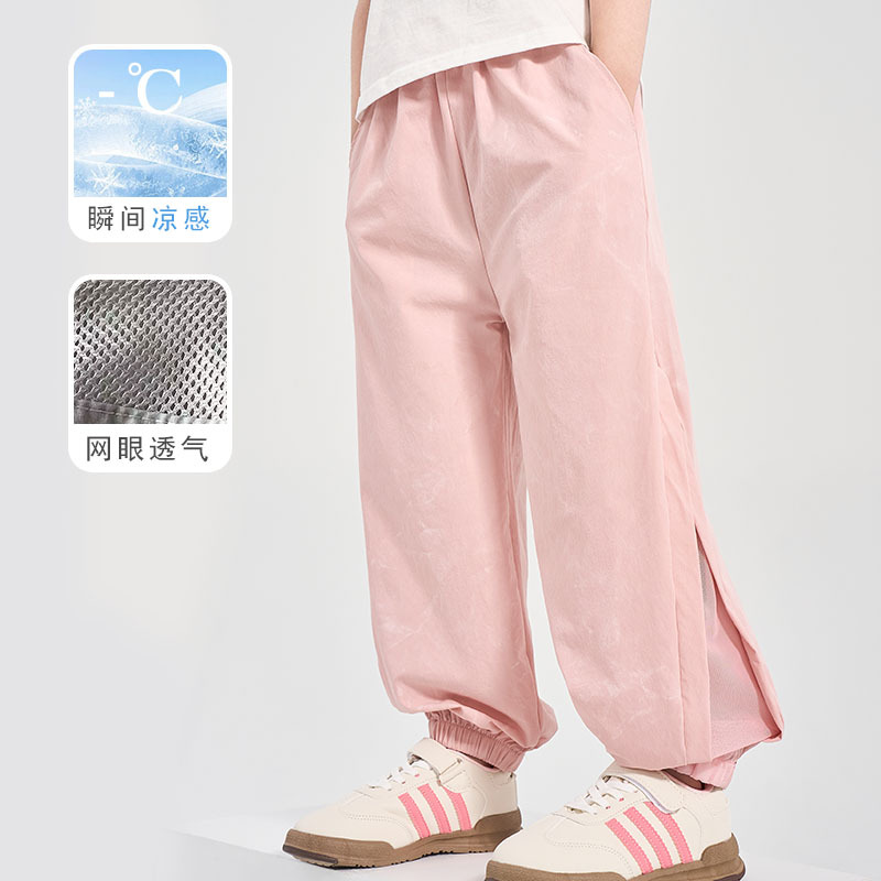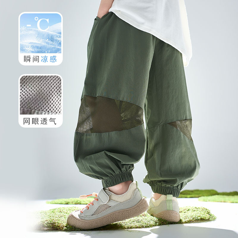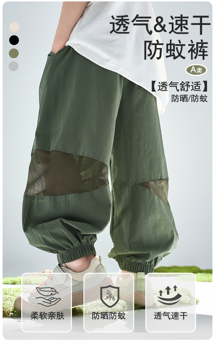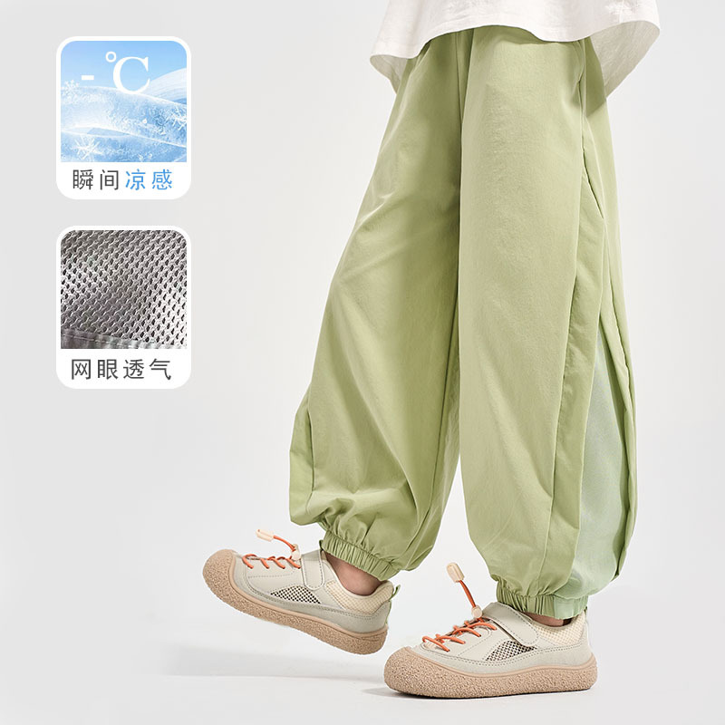 어린이 여름 아이스 실크 스포츠 빠른 건조 바지 소년 바지 메쉬 메쉬 메쉬 안티 모기 바지 큰 어린이와 소녀 캐주얼 바지 여름 착용