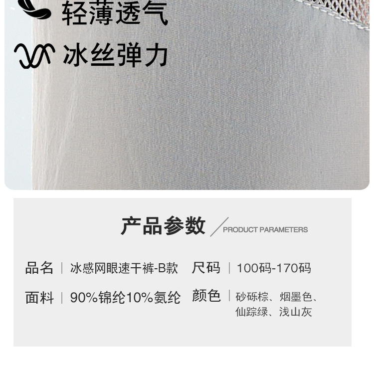 • 【7A 항균】 아이스 메쉬 속건 팬츠 - B형 - 라이트 마운틴 그레이