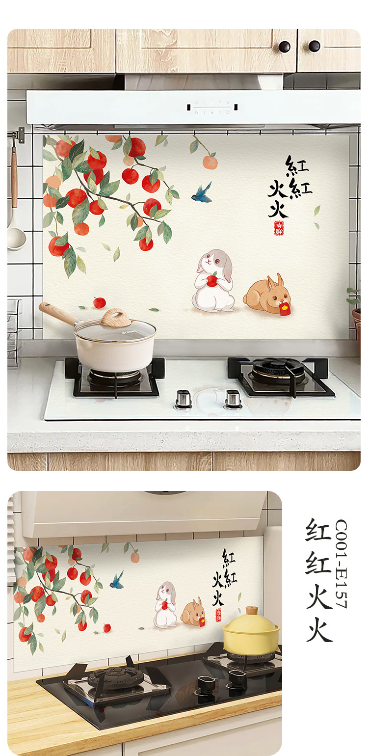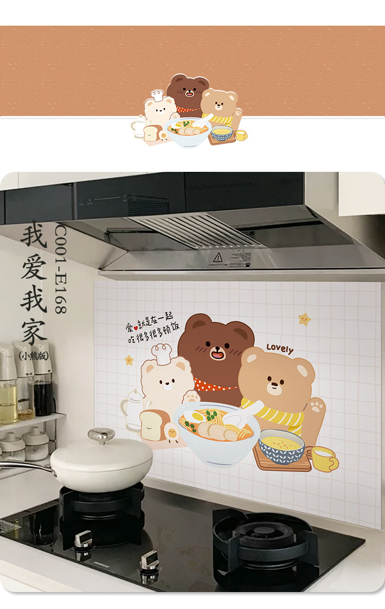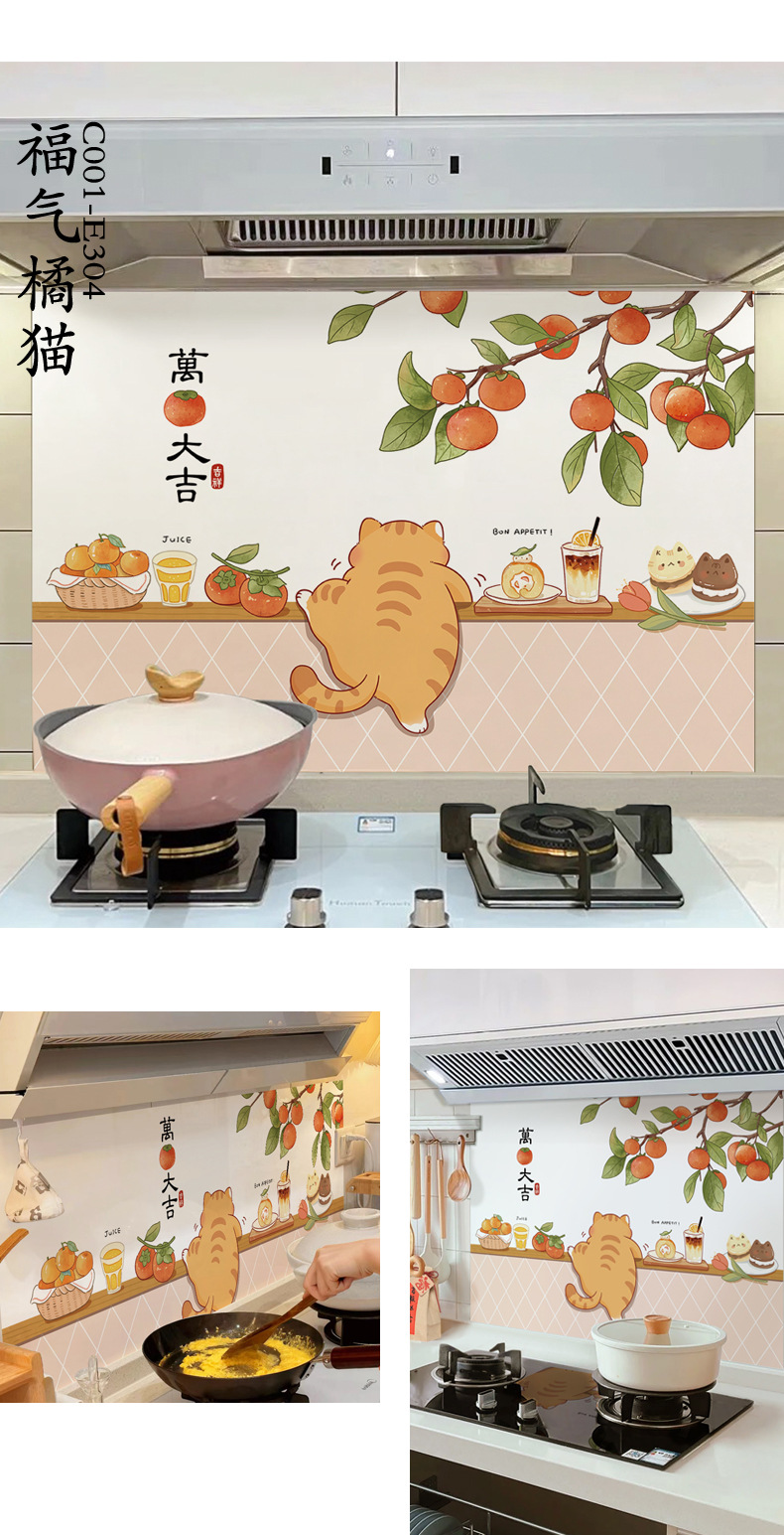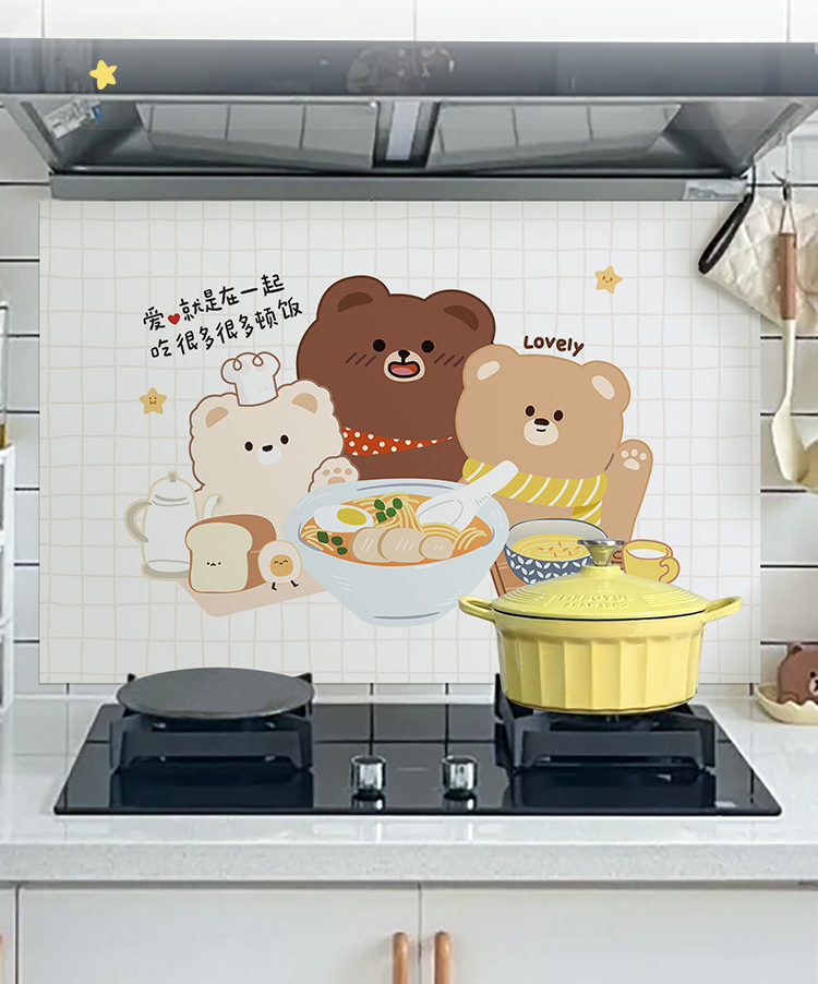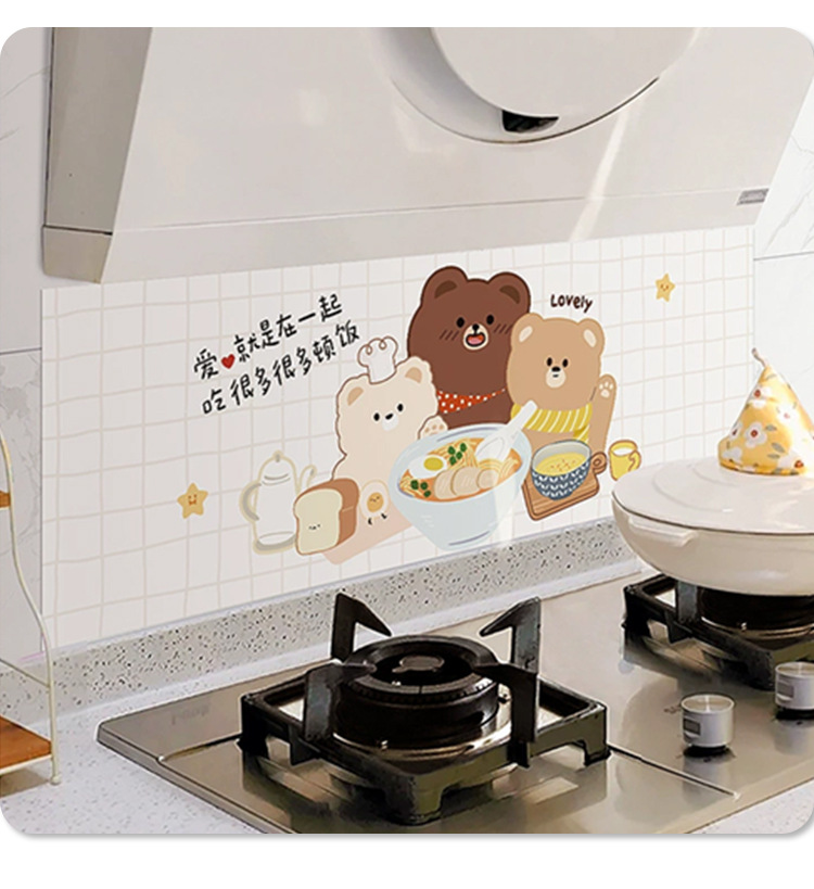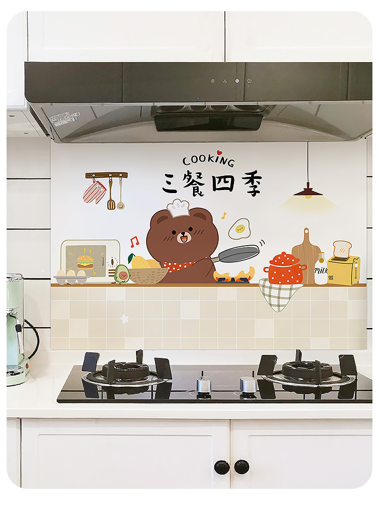 주방 내화 스티커 내화 고온 방수 카운터 탑 범위 후드 스토브 벽지 벽 커버 귀여운 필름스토어 가기