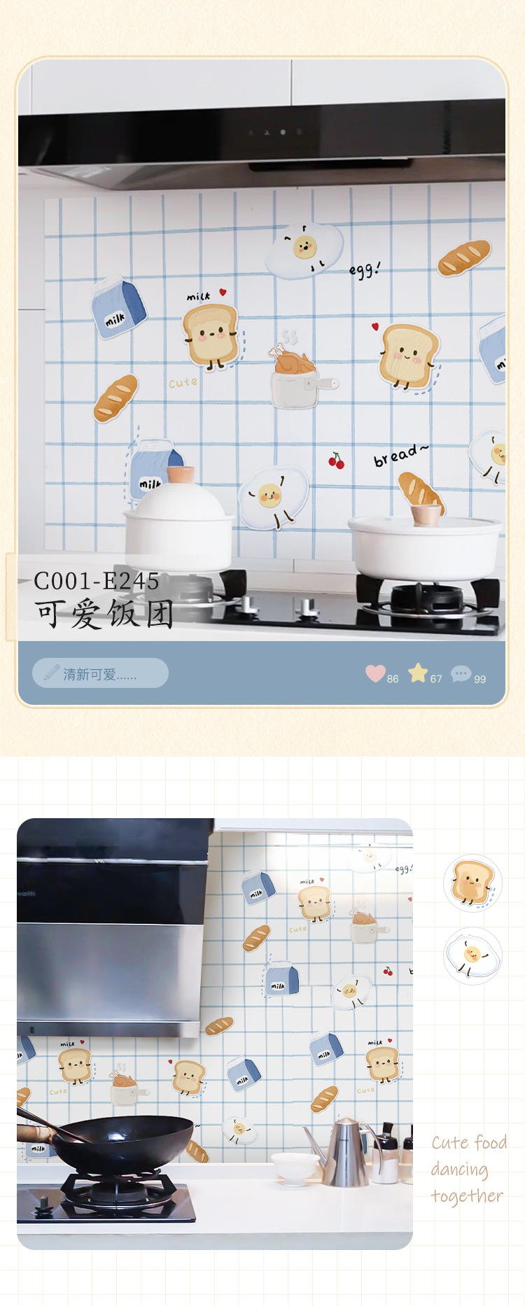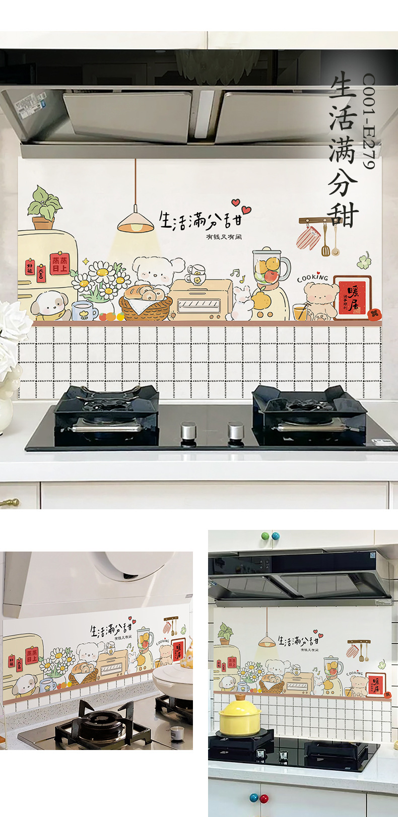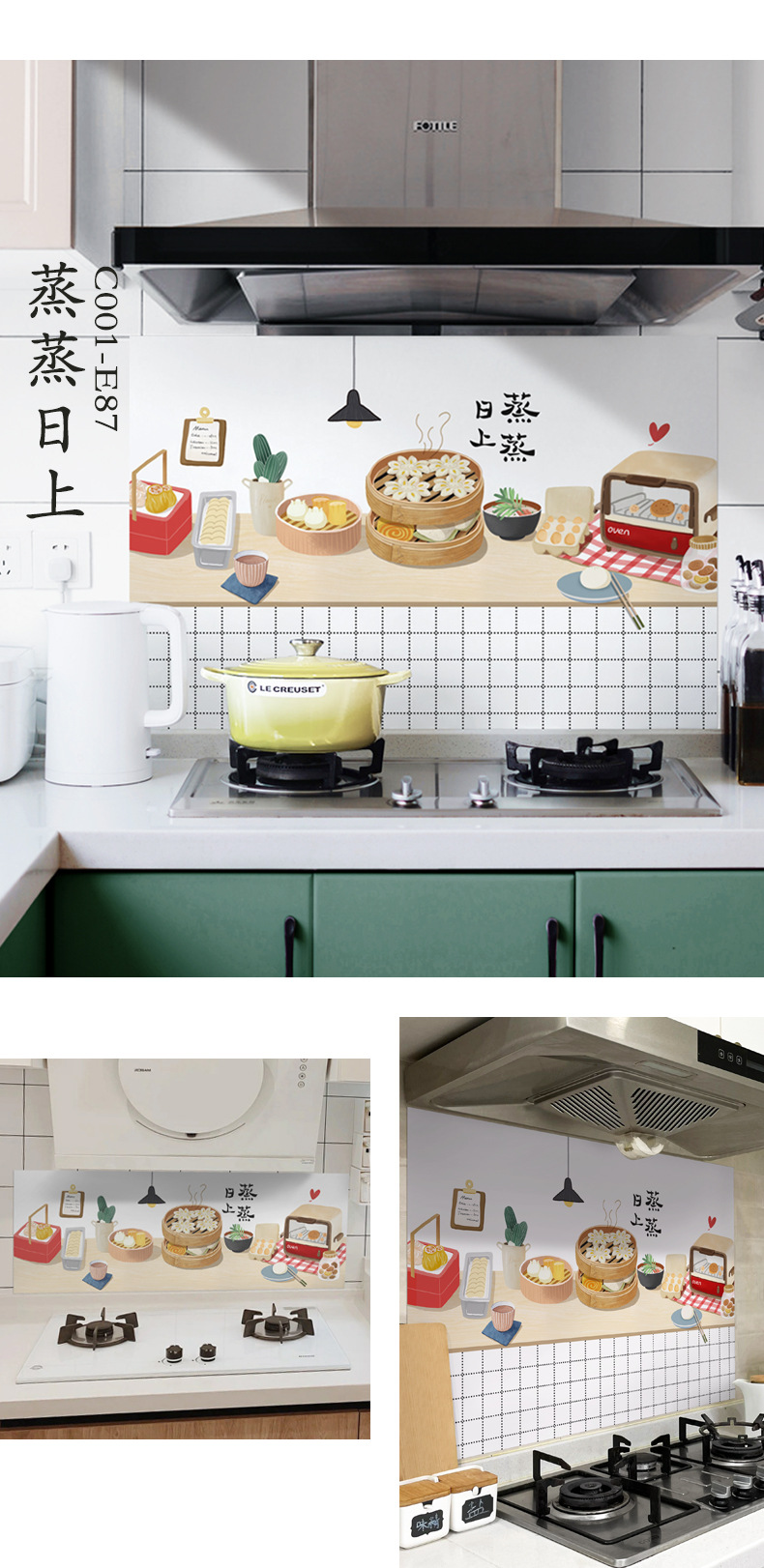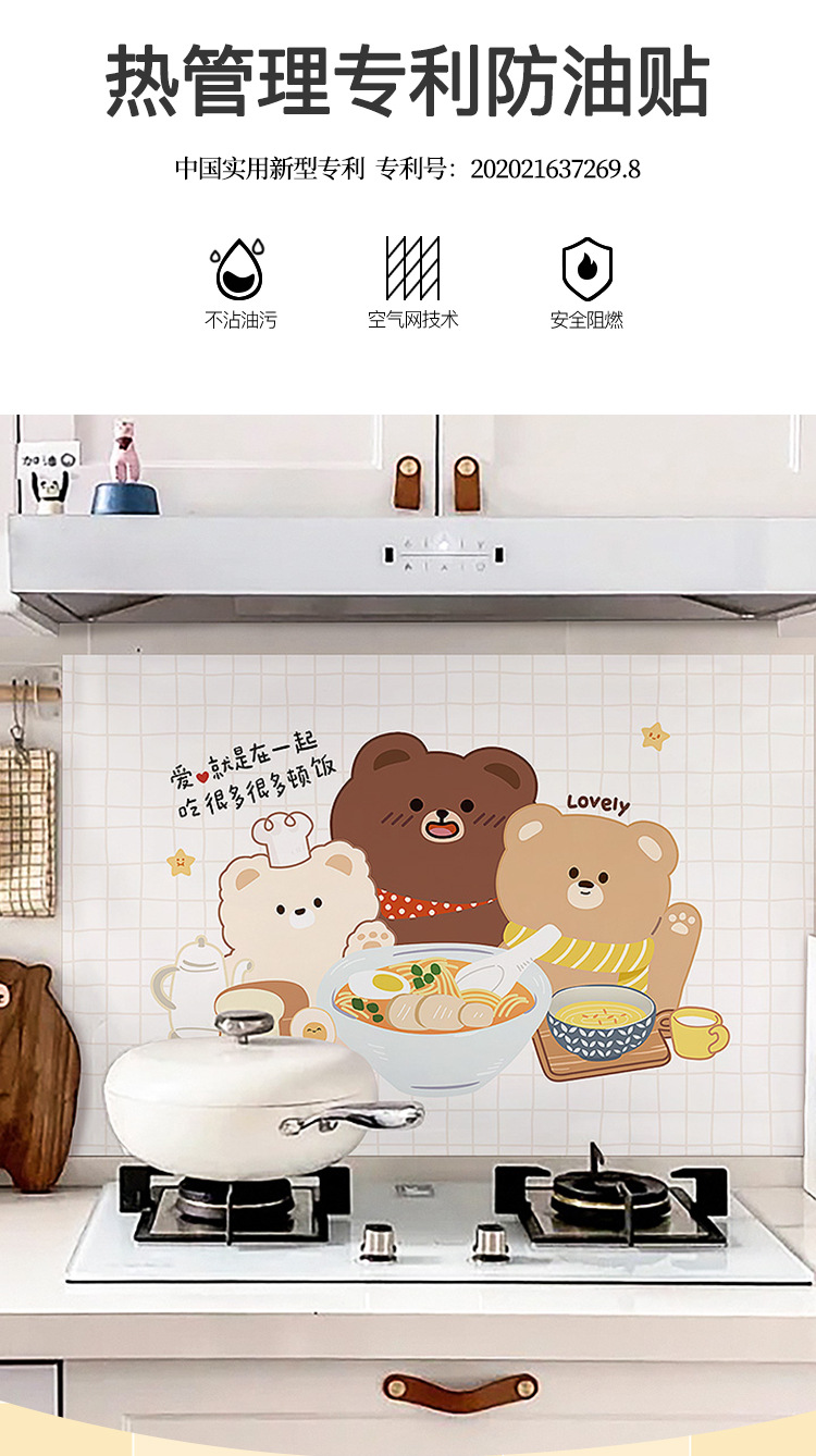 주방 내화 스티커 내화 고온 방수 카운터 탑 범위 후드 스토브 벽지 벽 커버 귀여운 필름스토어 가기