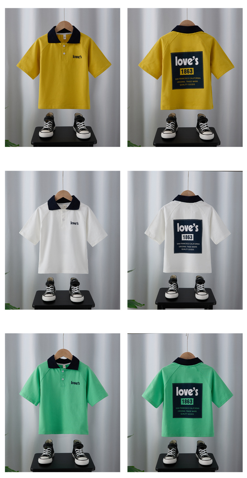 남학생 반팔 티셔츠 2025 여름 새 어린이 옷깃 캐주얼 Ppolo 셔츠 중형 및 대형 어린이 대외 무역 얇은 통기성스토어 가기
