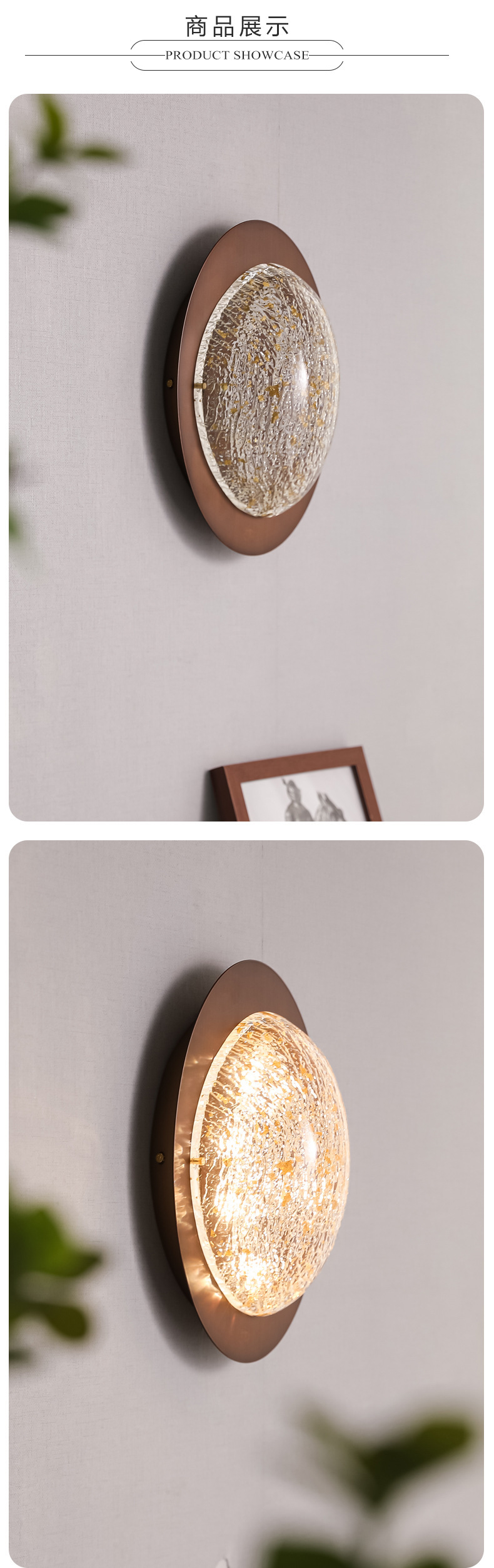 중간 호두 컬러 침대 옆 램프 프랑스 빈티지 수지 골드 호일 벽 램프 통로 배경 벽 장식 중산 램프스토어 가기